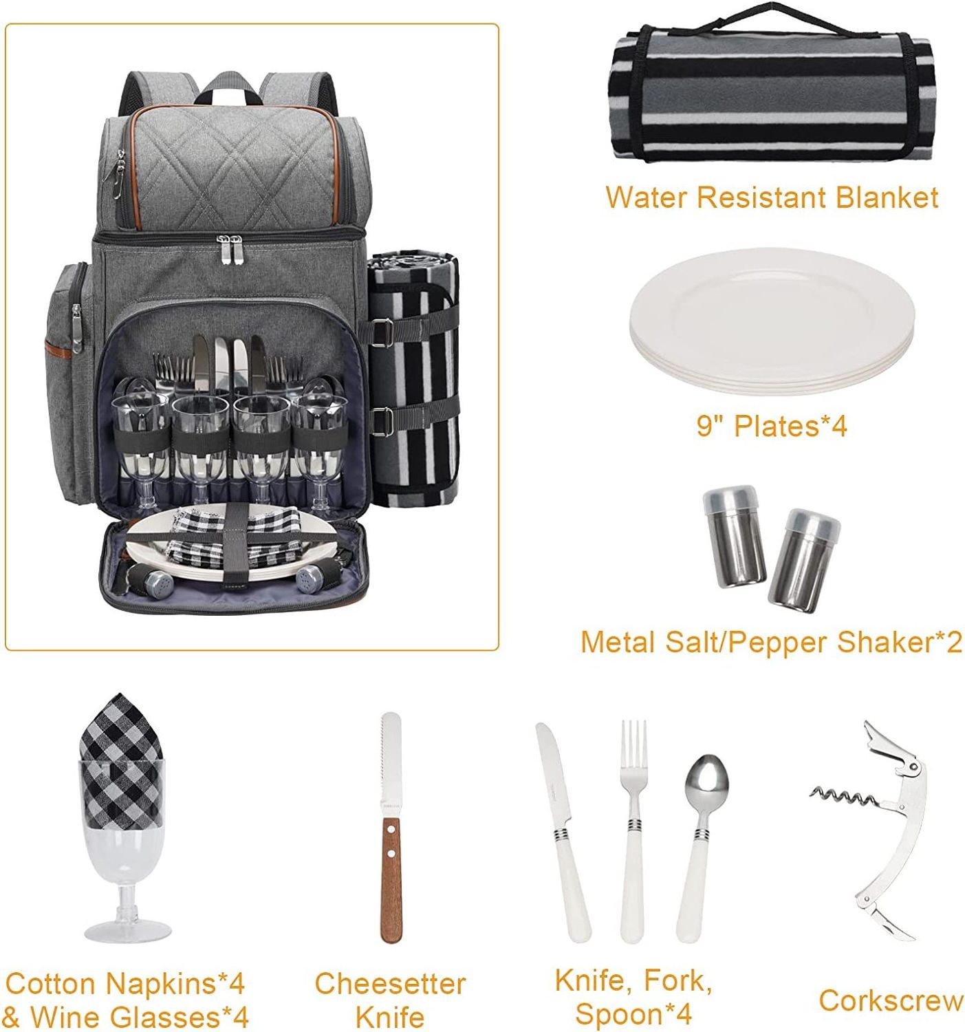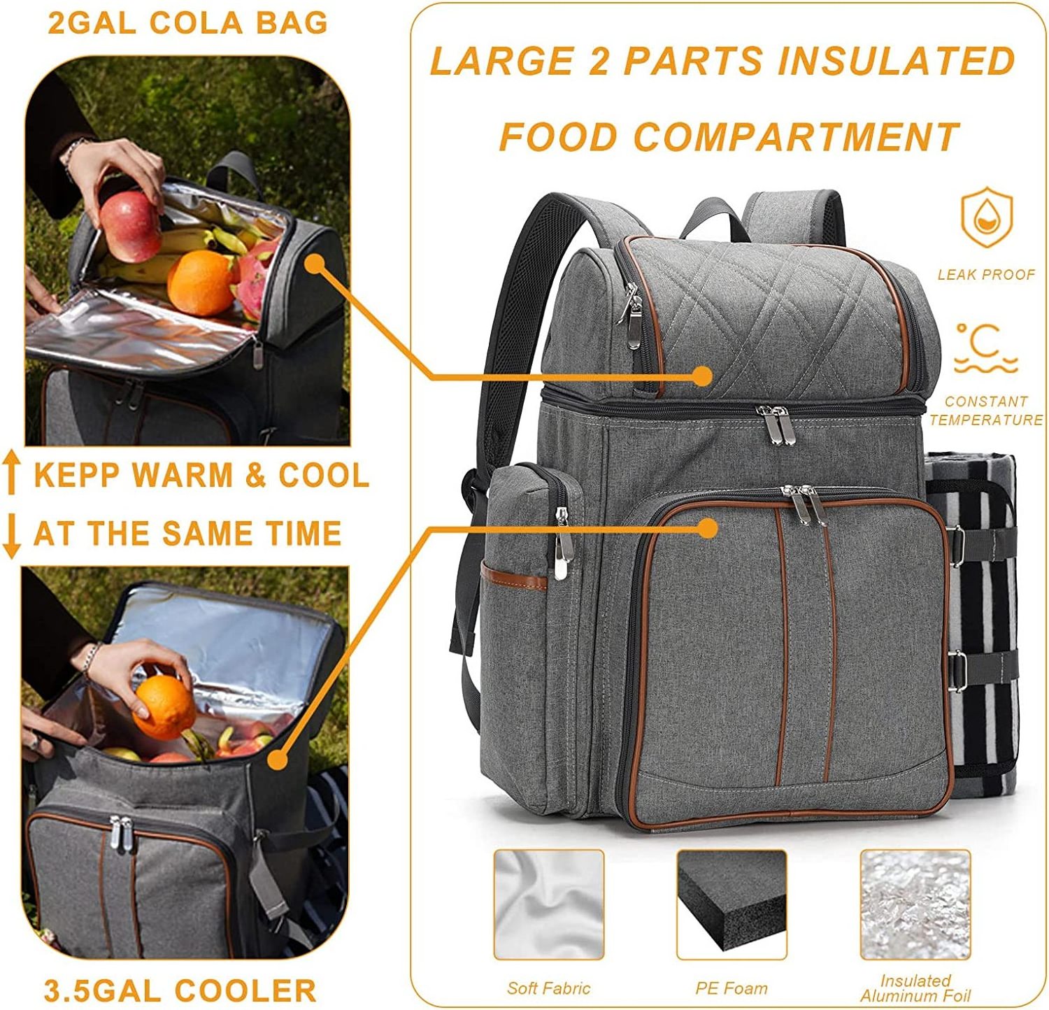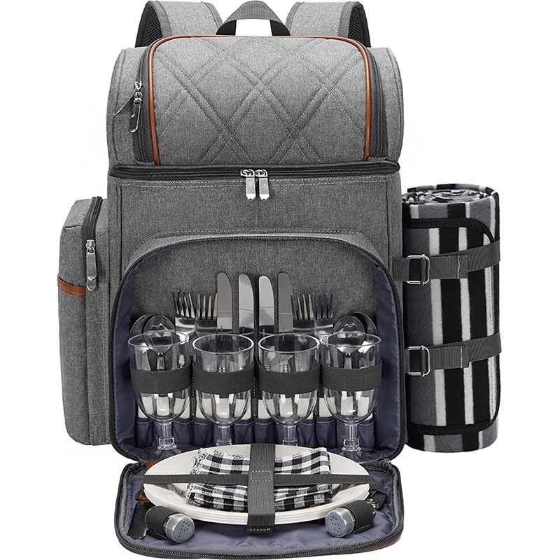 Newest Wholesale Outdoor Foldable Family 4 Persons Beach Picnic Backpack Set Bag Camping Insulated Cooler Picnic Backpack