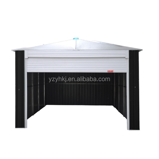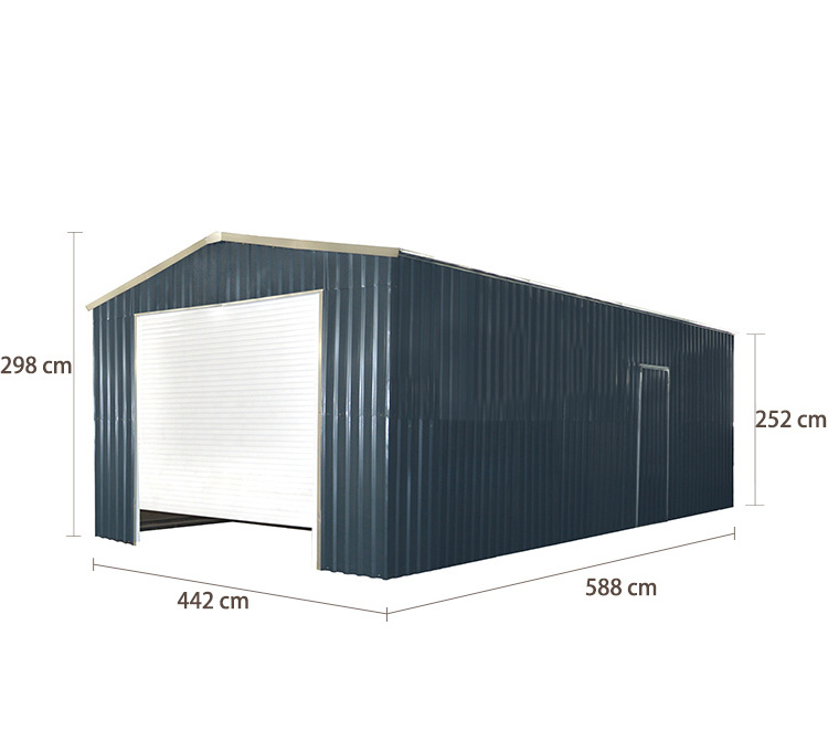 ① Apex roof shed with easy clip system of shed corners and hinged doors. Compared with other metal sheds, it is fast to build.