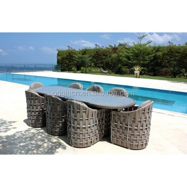 8 seater outdoor villa pool dining furniture oval long table and wide rattan dinning set table