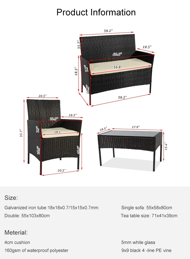Single sofa : 55*58*80cm Table : 71*41*39cm |