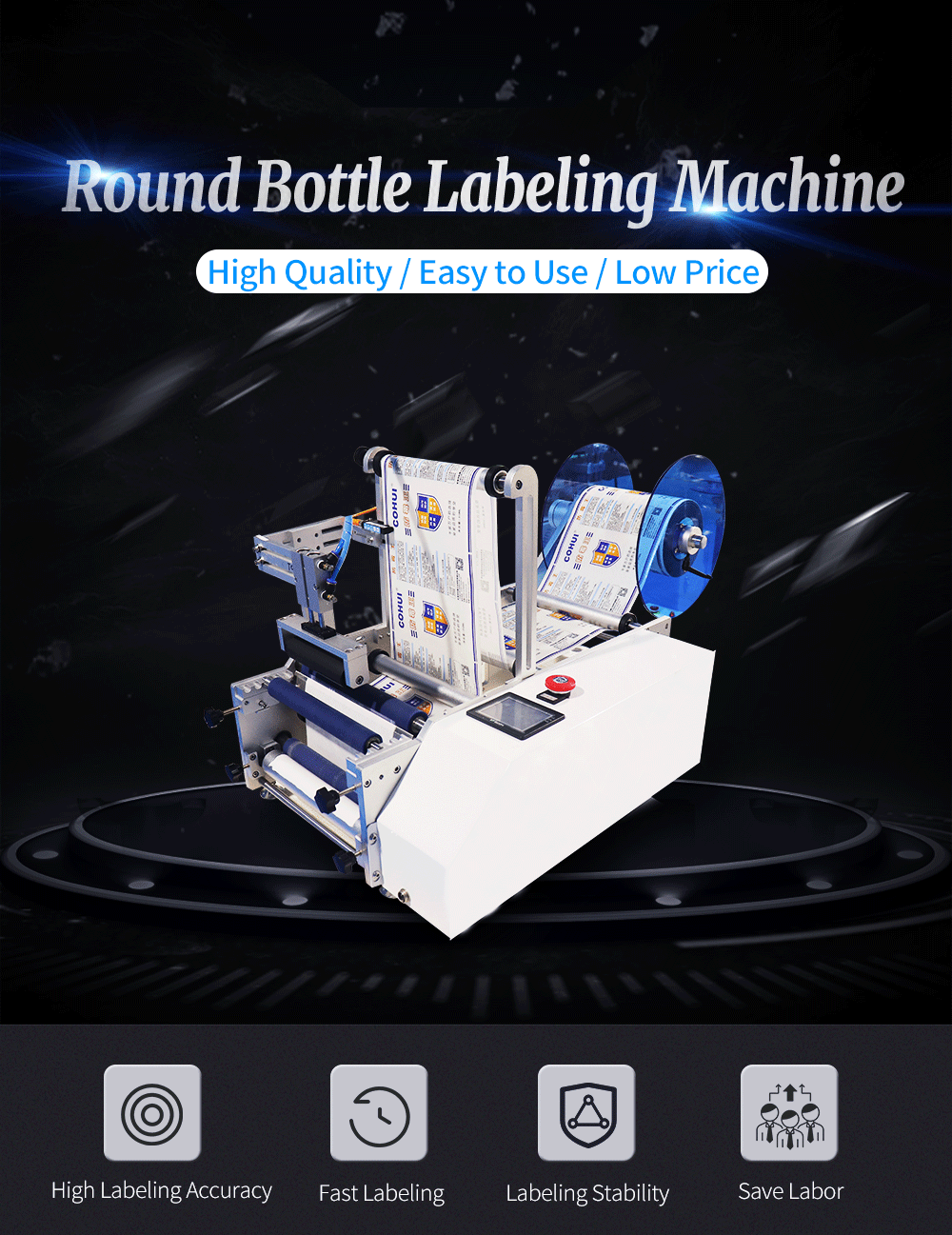 Round Bottle, Plane, Side Labeling Machine, Semi-automatic/Automatic Filling Machine, Semi-automatic/Automatic Packaging Machine, Self-adhesive Label, We Can Also Customize the Machine.