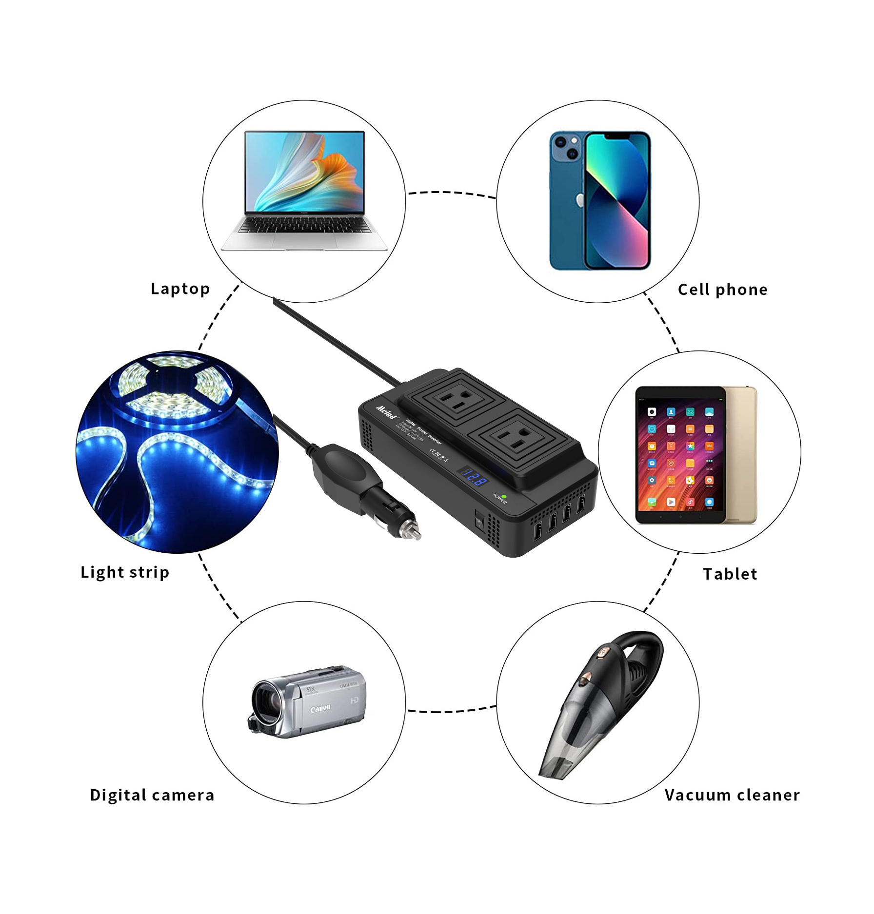 tablets, GPS units, TV, battery chargers, camping equipment and mobile office equipment.