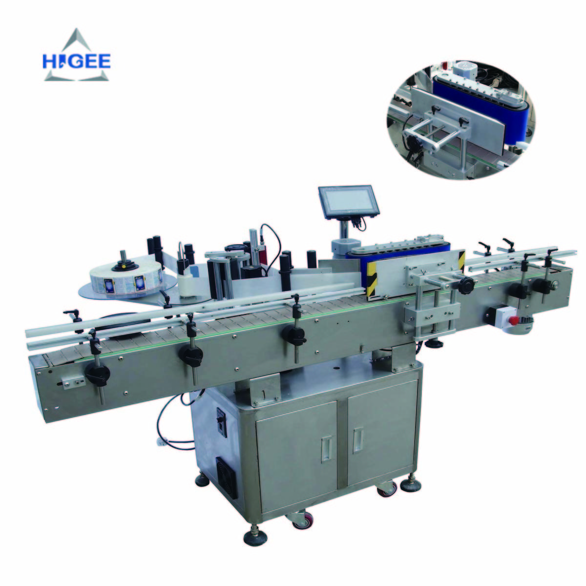 With Side Labeling Device (single side or double side) + Option (with round bottle labeling device)