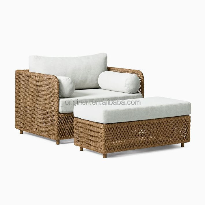 Coastal outdoor furniture aluminum frame handcrafted durable all-weather wicker inviting deep seat lounge chair ottoman