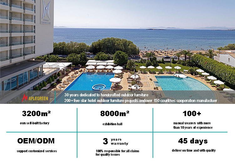Foshan Maple Green Furniture Company, located in Foshan, China, specializes in rattan rope gardensets, dining sets, LED lighting furniture, and outdoor umbrellas. After 13 years of development, we now have 1 factory covering an area of 40,000 m², a team of 10 talented designers, and we consistently adhere tointernational certification standards such as SGS and AQL.