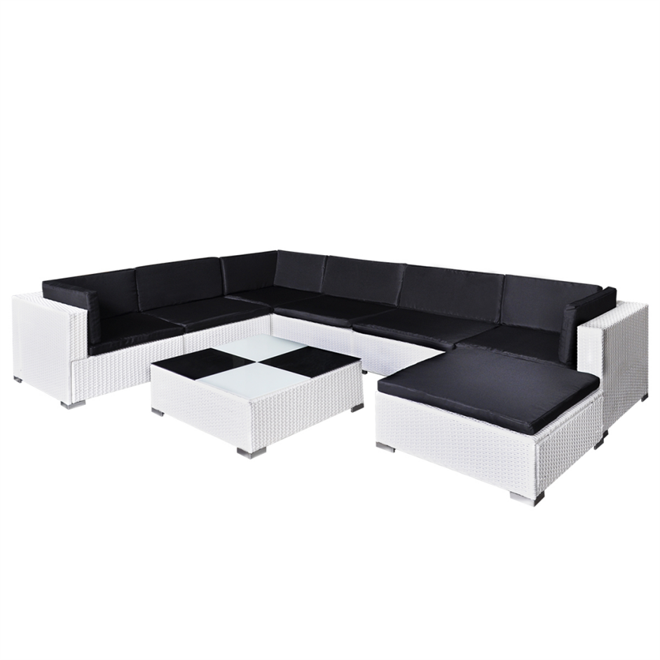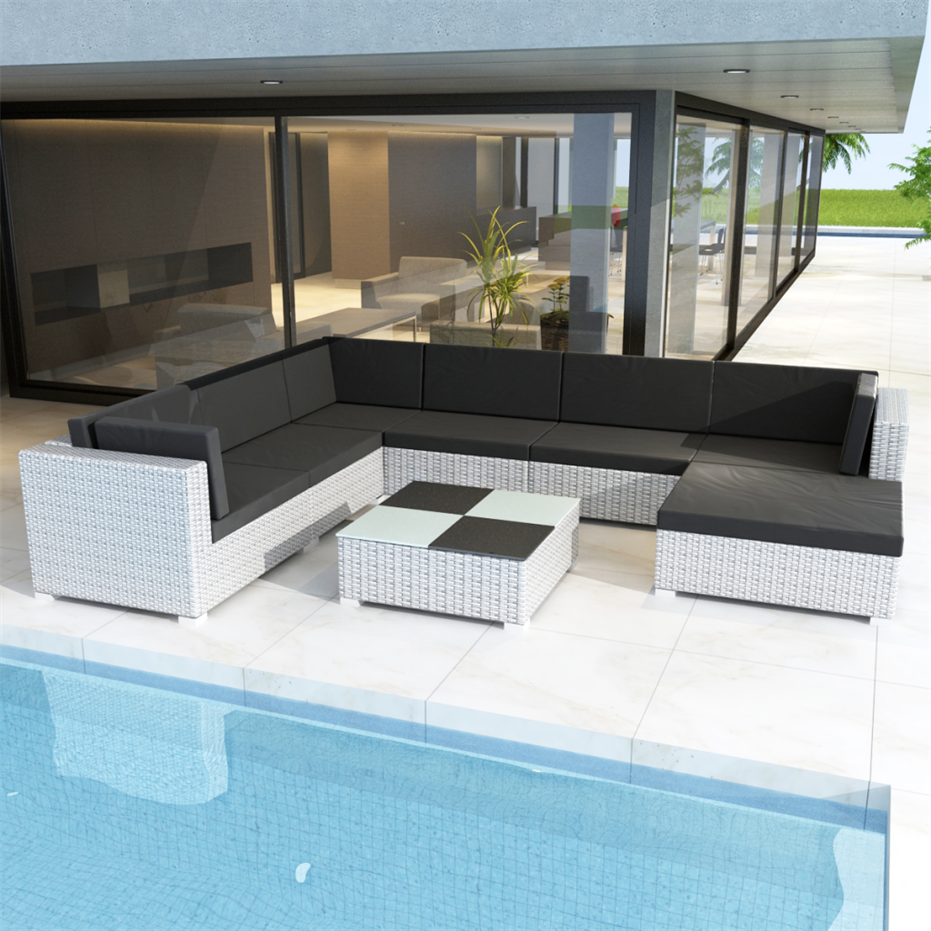 Patio leisure contemporary sectional sofa couch set L shape white rattan outdoor furniture