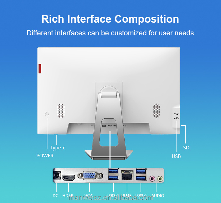 Built-in UPS Battery Optional, Super Thin Bezel-less LCD, Webcam+Mic, Fast Assemble Structure, Internal Shielding Case, Height Adjustable Stand Optional, Seperate CPU cooler vent-pipe, Suitable for high-end business office, government department, education etc.