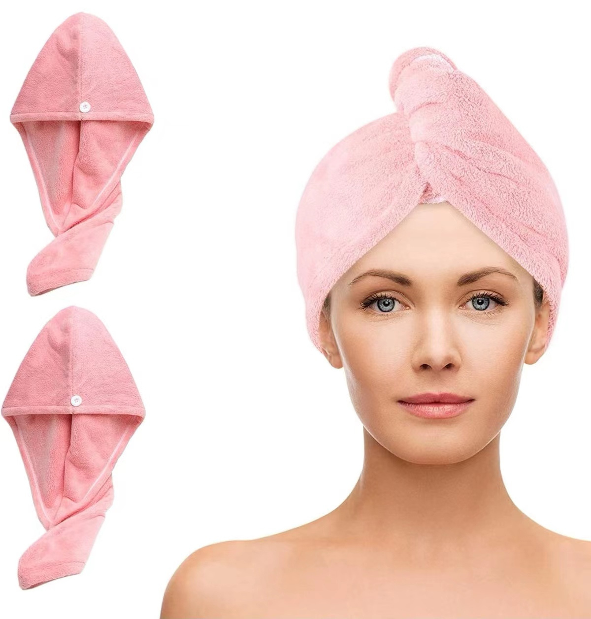 The microfiber hair turban are fine texture, feel soft, high elastic fine fleecy,with strong decontamination and water absorption properties. There is no damage to the surface to be wiped, and there is no ciliary shedding common in cotton fabric. Easy to wash, durable, compared with the traditional pure cotton towel.