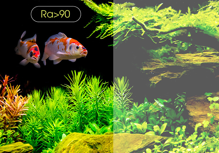 High color rendering (Ra>90) gives the most realistic fish and plant colors and preserves the color of fish (especially Koi fish and Arowana fish).