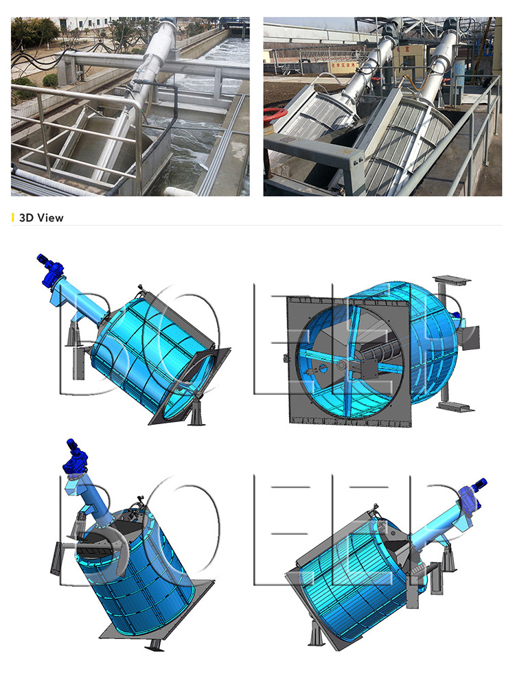 BOEEP Rotary drum fine screen is widely applied for wastewater treatment projects such as urban wastewater, industry wastewater, food process industry, paper industry and so on. This equipment can clean scum, short fiber, and suspended matter from the water intake, and then discharge them after pressing. It can be used for wastewater treatment engineering such as high precision process, small screen gap and low depth of channel.