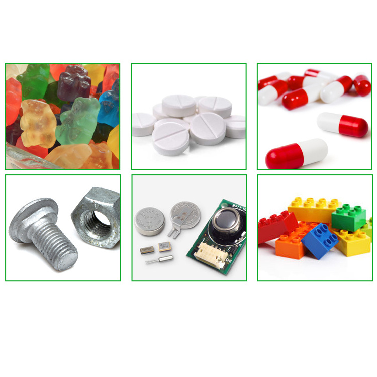 Such as gummy candy, pill, hardware, plastic, etc.
