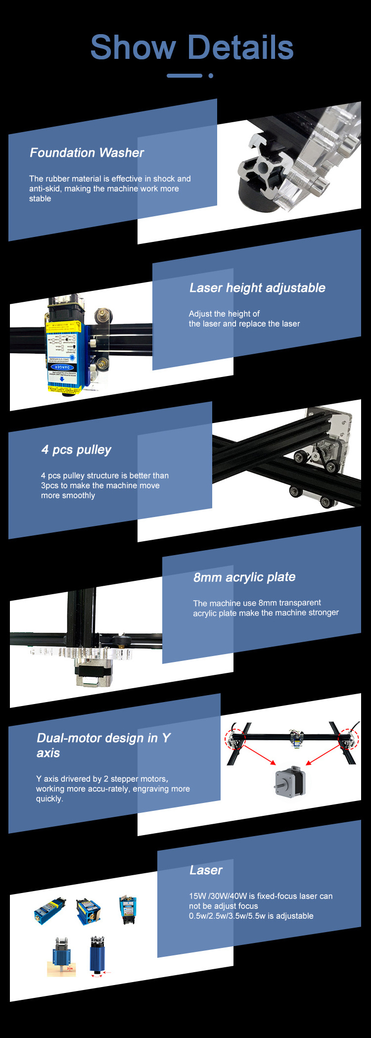 If you want to turn a 2-axis machine into a 3-axis machine, also need a 3 axis control board and 24V 5A adapter.