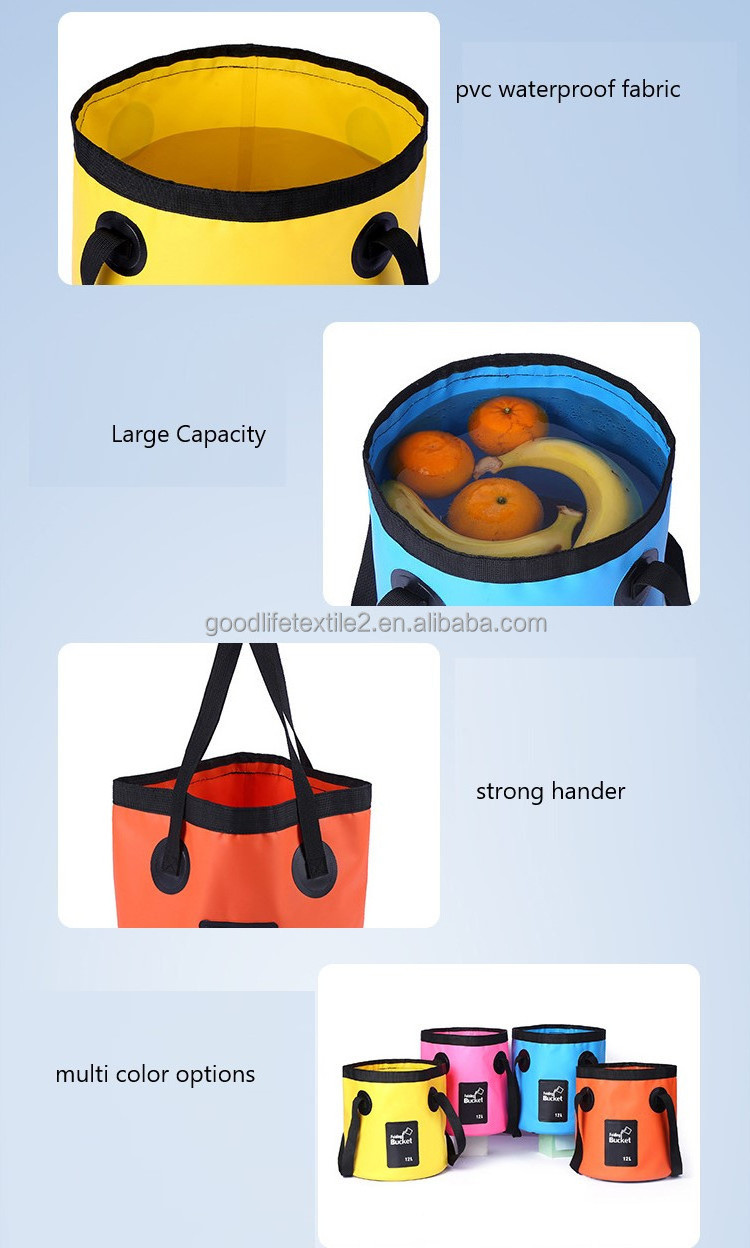 12L20L PVC Collapsible Waterproof Fishing Bucket, Wholesale Camping Folding Water Ice Bucket