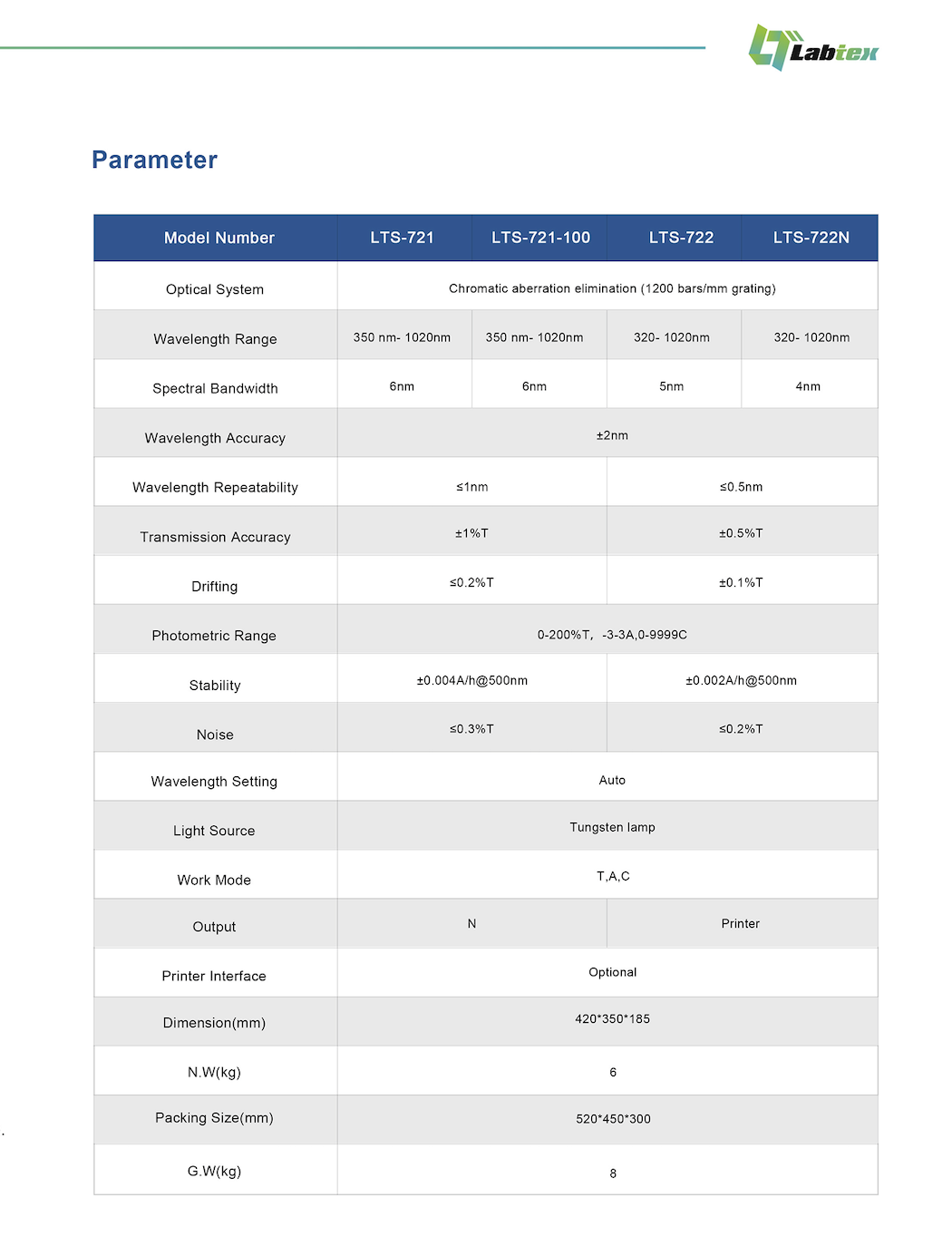LTS-721/722 Series Visible spectrophotometer