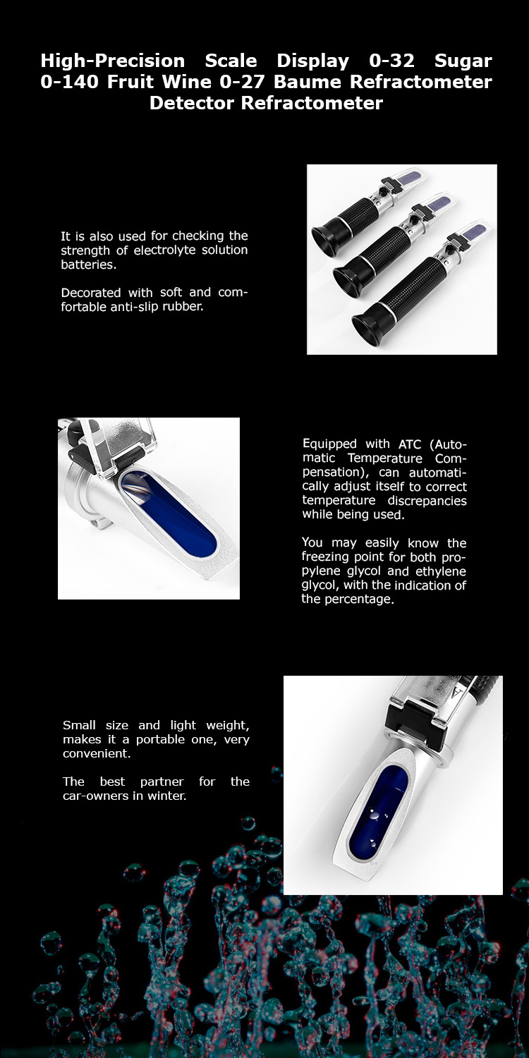 High-Precision Scale Display 0-32 Sugar 0-140 Fruit Wine 0-27 Baume Refractometer Detector Refractometer.