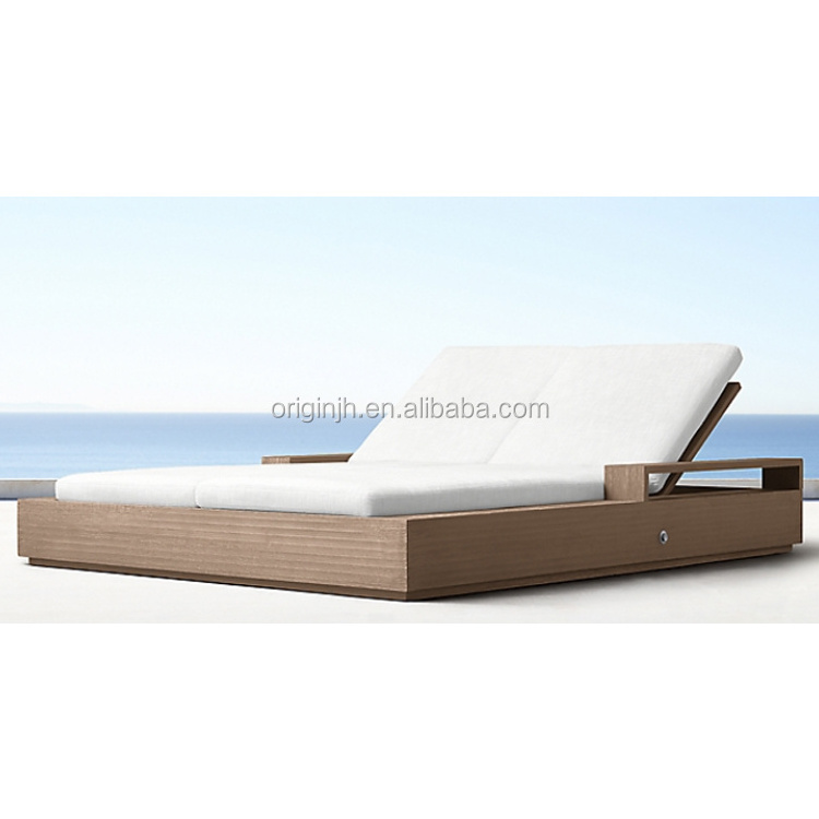Morden hot selling garden patio pool armrests chaise set two people teak outdoor furniture sun lounge chair