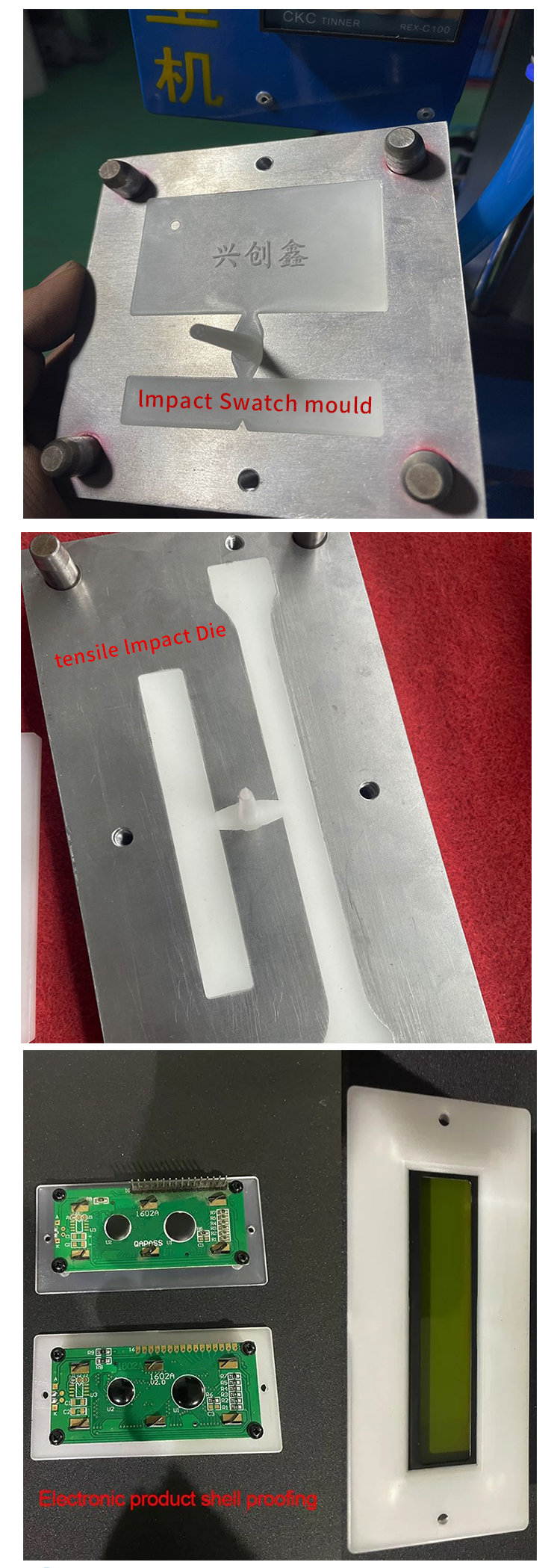 Impact swatch mold, pull-up impact mold, stainless steel bolts, adjustable injection pressure, temperature control display. Easy to operate.