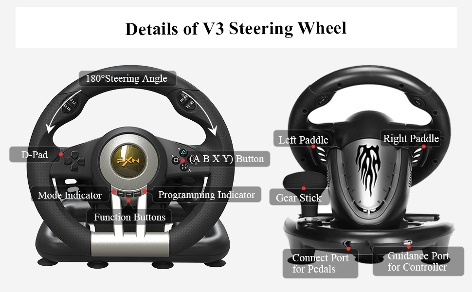 Wired racing steering wheel for PC/P3/P4/XBX ONE/Switch