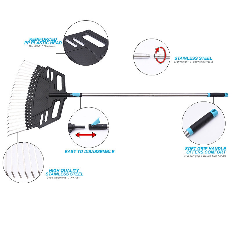 Product Name:Stainless Steel Handle 24 Tines Leaf Rake