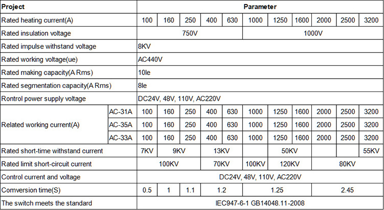 100A,160A,250A,400A,630A,1000A,1250A,1600A,2000A,2500A,3200A