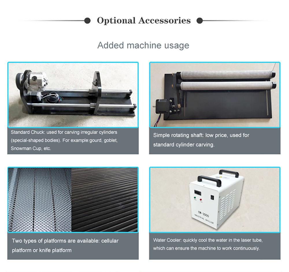 blower and exhaust pipe, water chiller, air pump, electric lift table, DSP offline control, software, etc.