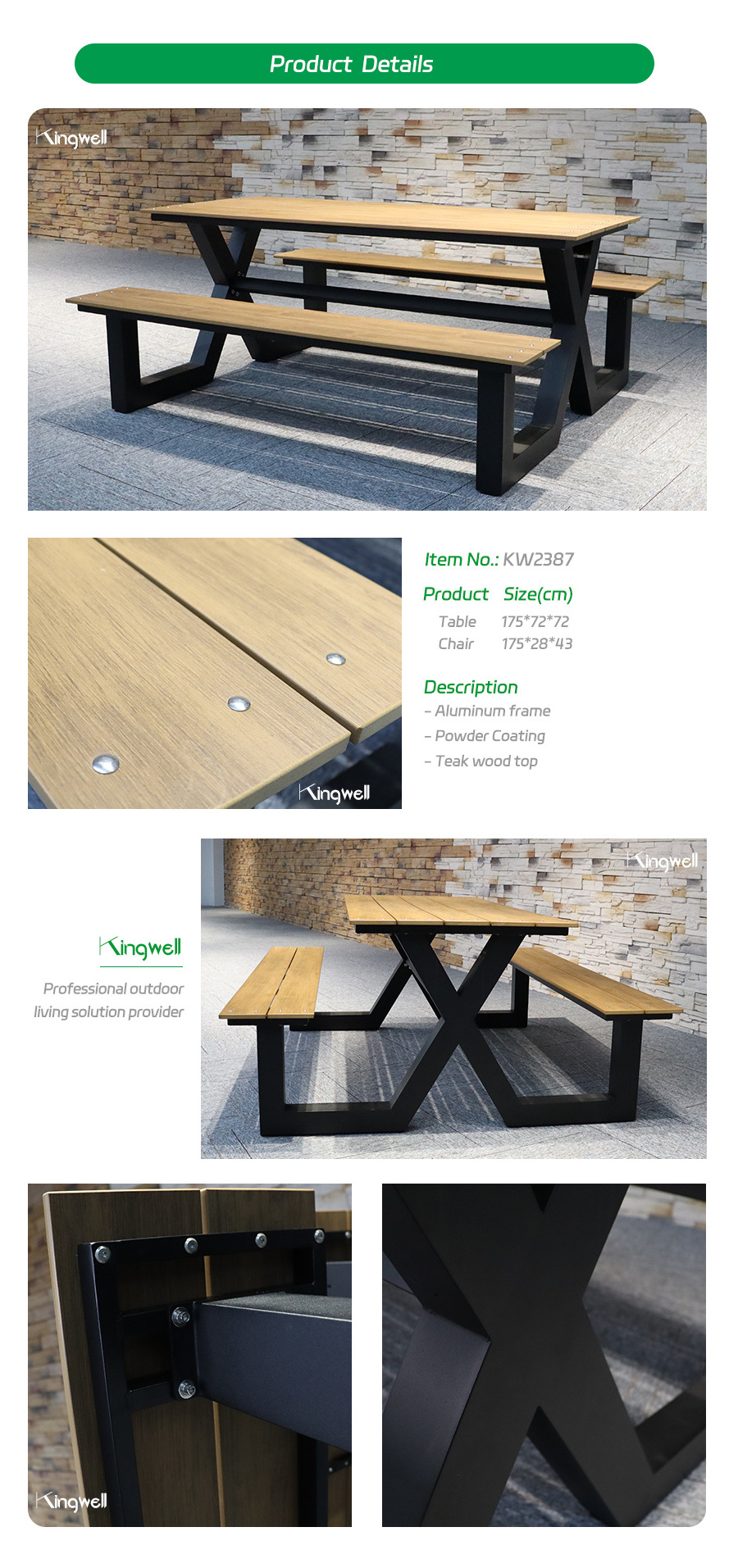 Aluminum, Plastic wood, Aluminum, Plastic wood