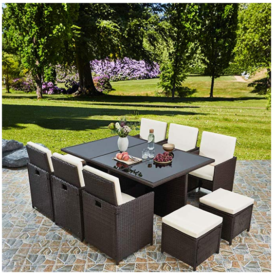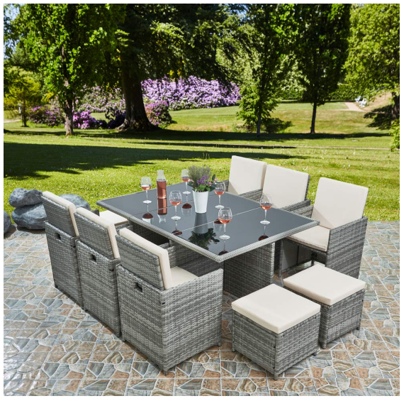 New Design Garden Rattan Furniture Wicker 10 Seater Dining Table Chairs Set Outdoor Furniture Garden Sets
