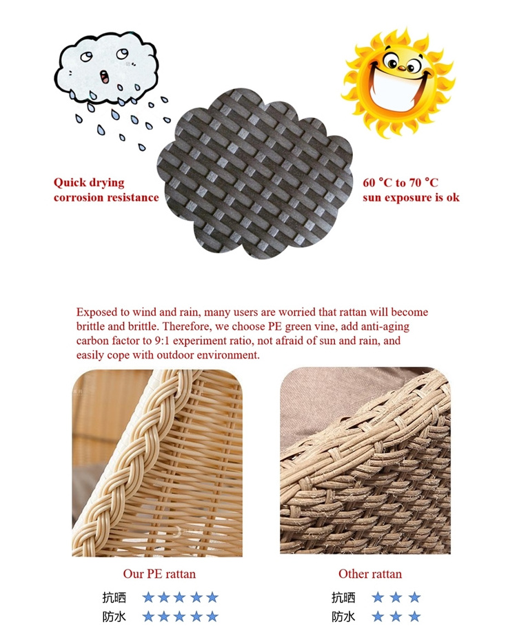 Warranty:We have 3 QC to supervise the quality, frame finished check - rattan woven check- packing check.