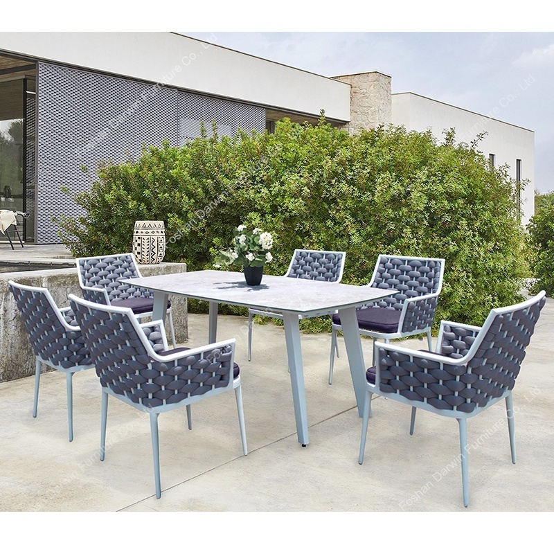 Luxury outdoor furniture rope rattan wicker garden dining table and chair outdoor furniture dining set