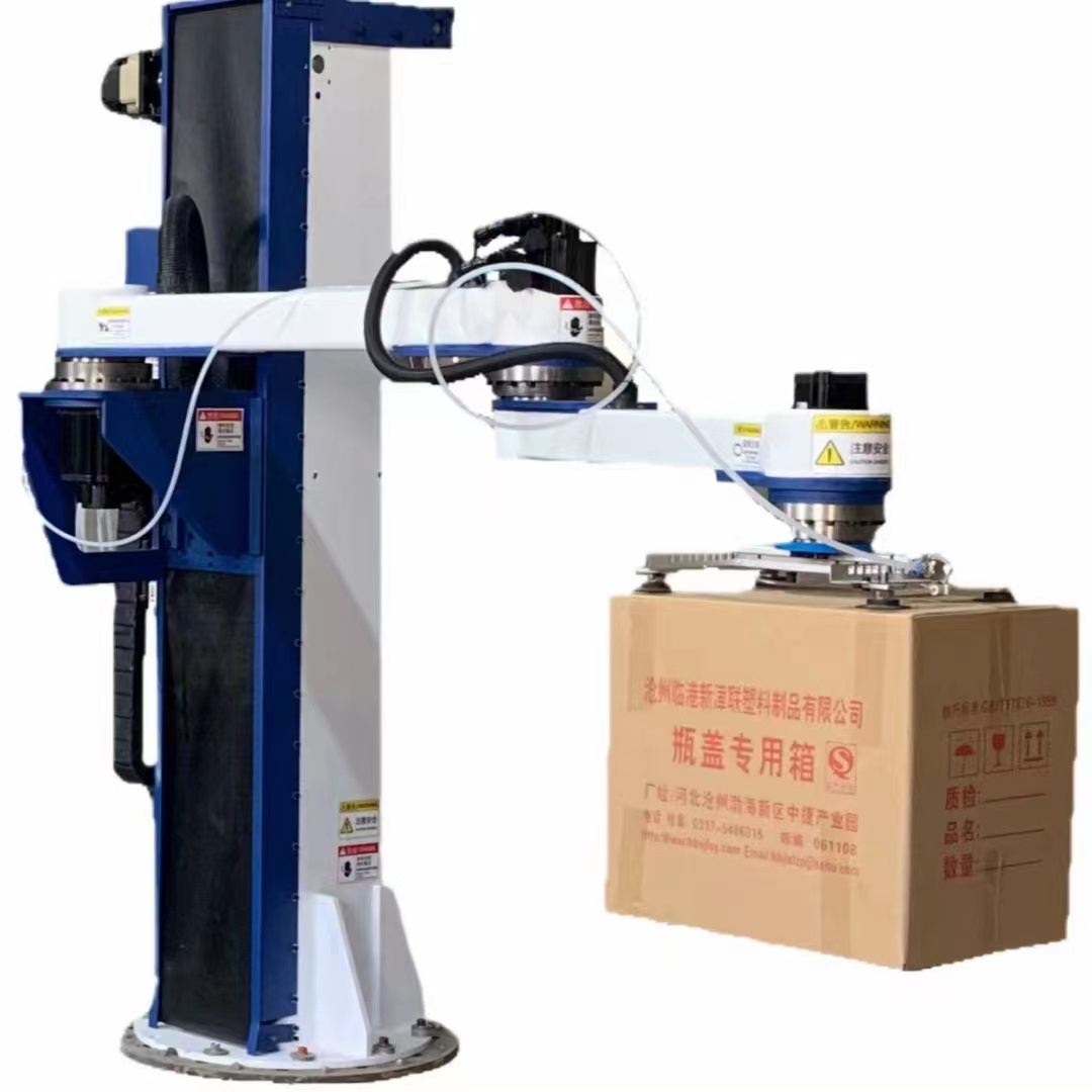 The robot palletizing machine is suitable for chemical, beverage, food, beer, plastics, air conditioning and other manufacturing companies to carry out boxing, bagging, canning, boxing, bottled and other forms of finished products for packing and palletizing.