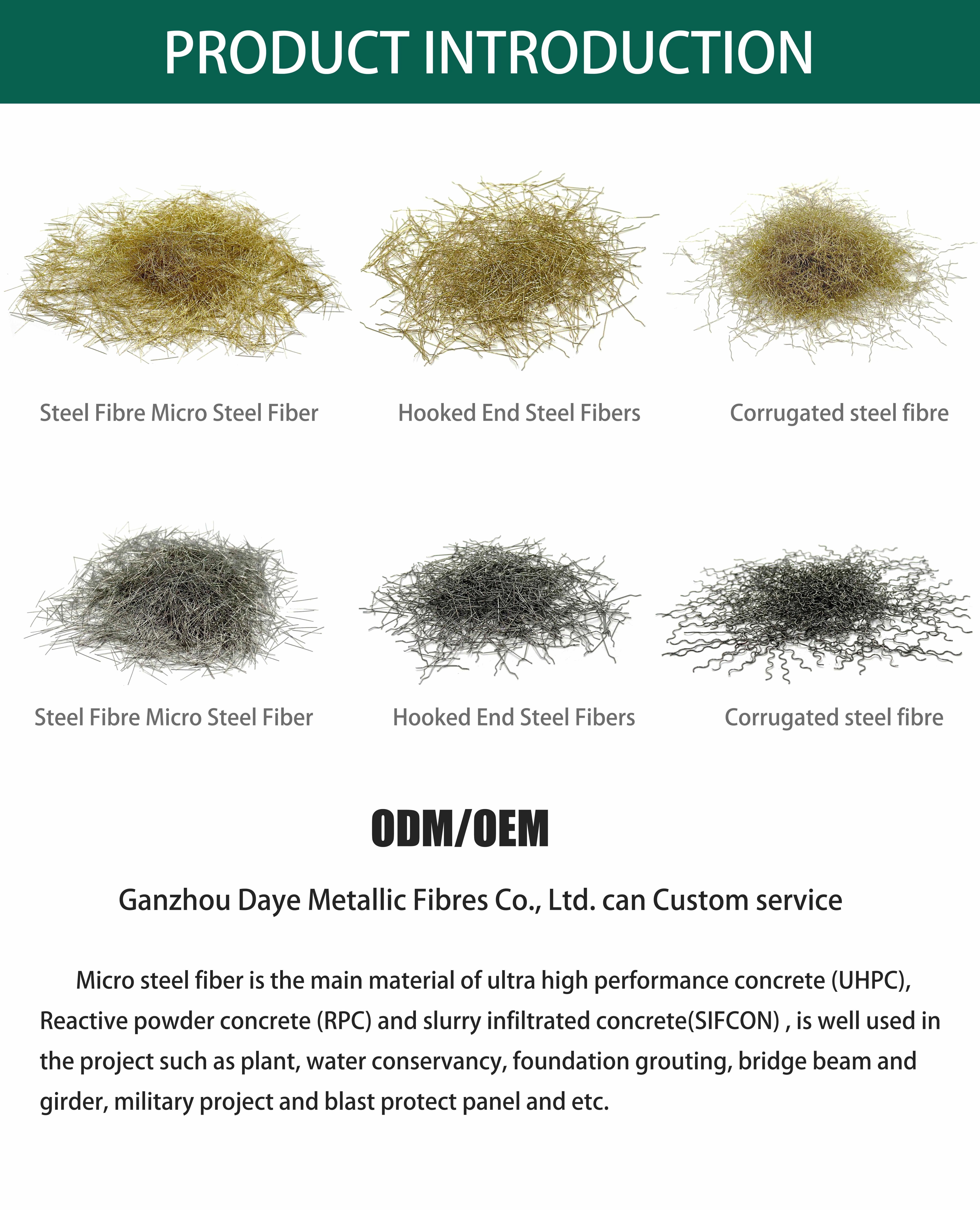 always glad ready to service you! Daye Fiber manufactures steel fibers that plays a strengthening