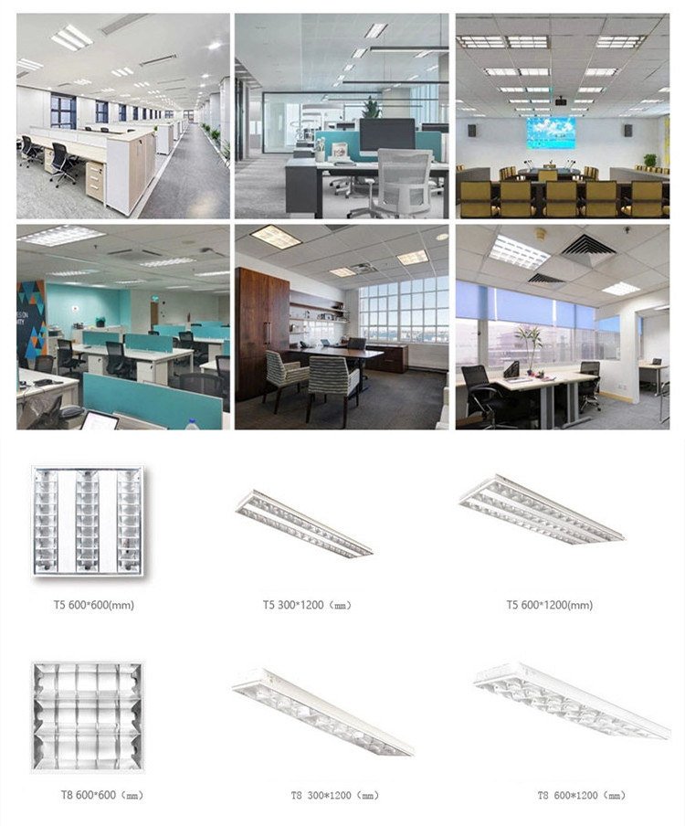 300*1200 600*1200 600*600 595*595 Grid Troffer Louver Lamp Recessed Mounted T5 T8 LED Grille Light Fixtures