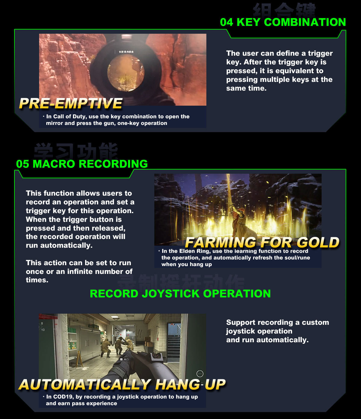 Support Recording Joy-stick Action and Auto Hand Up