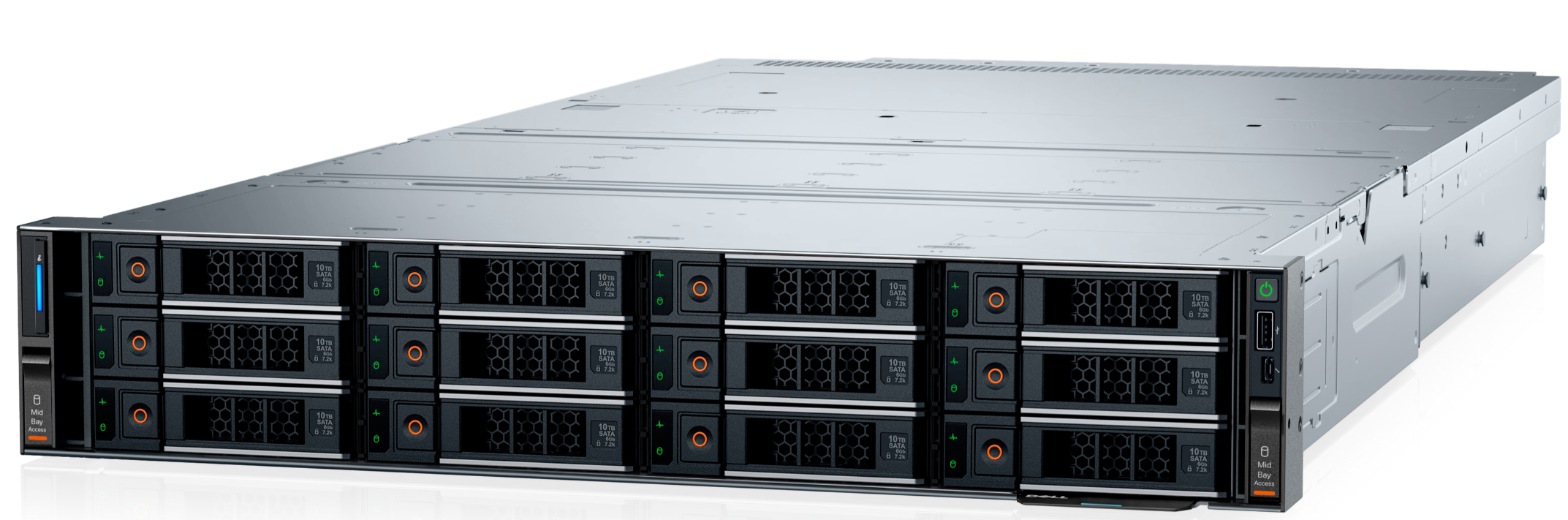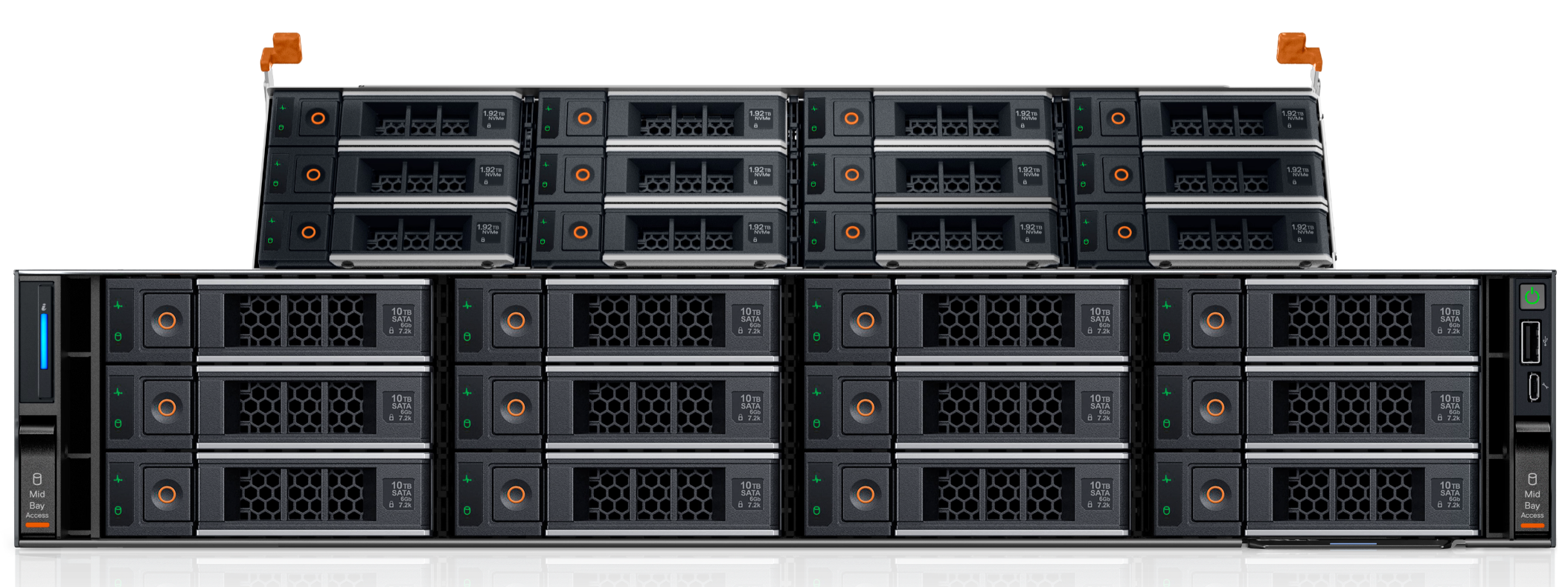 Front bays: • Up to 12 x 3.5-inch SAS/SATA max 264 TB Mid bays: • Up to 12 x 3.5-inch SAS/SATA max 264 TB Rear bays: • Up to 4 x
