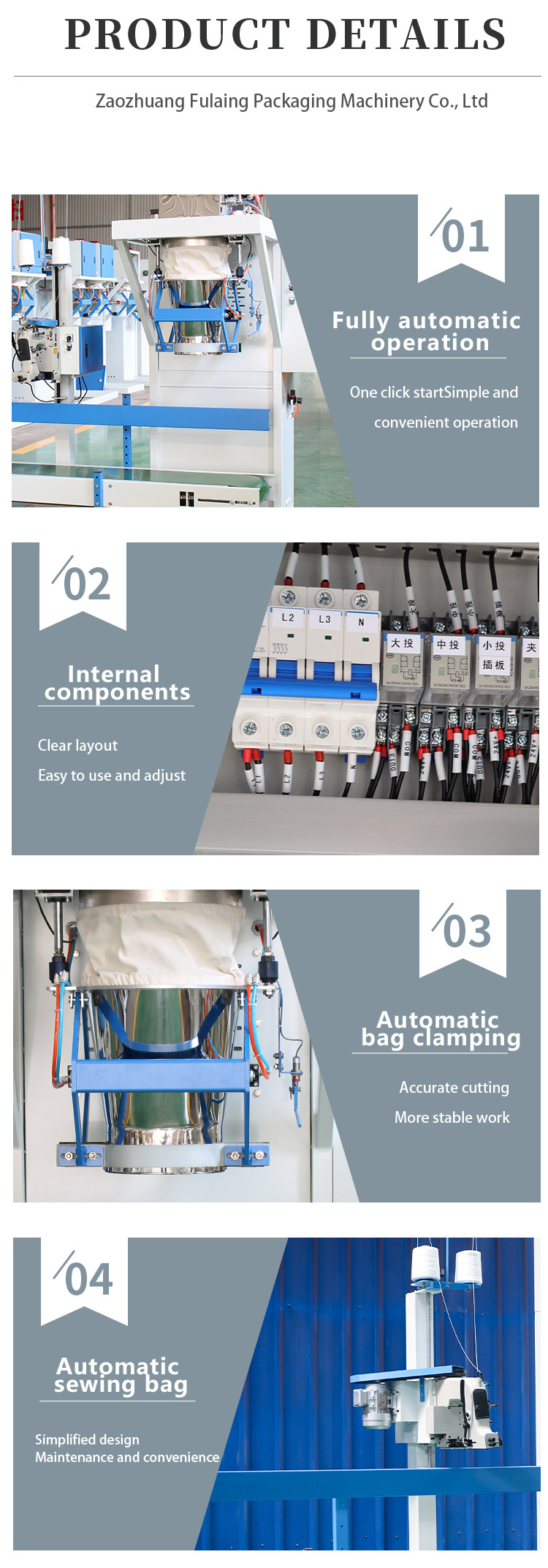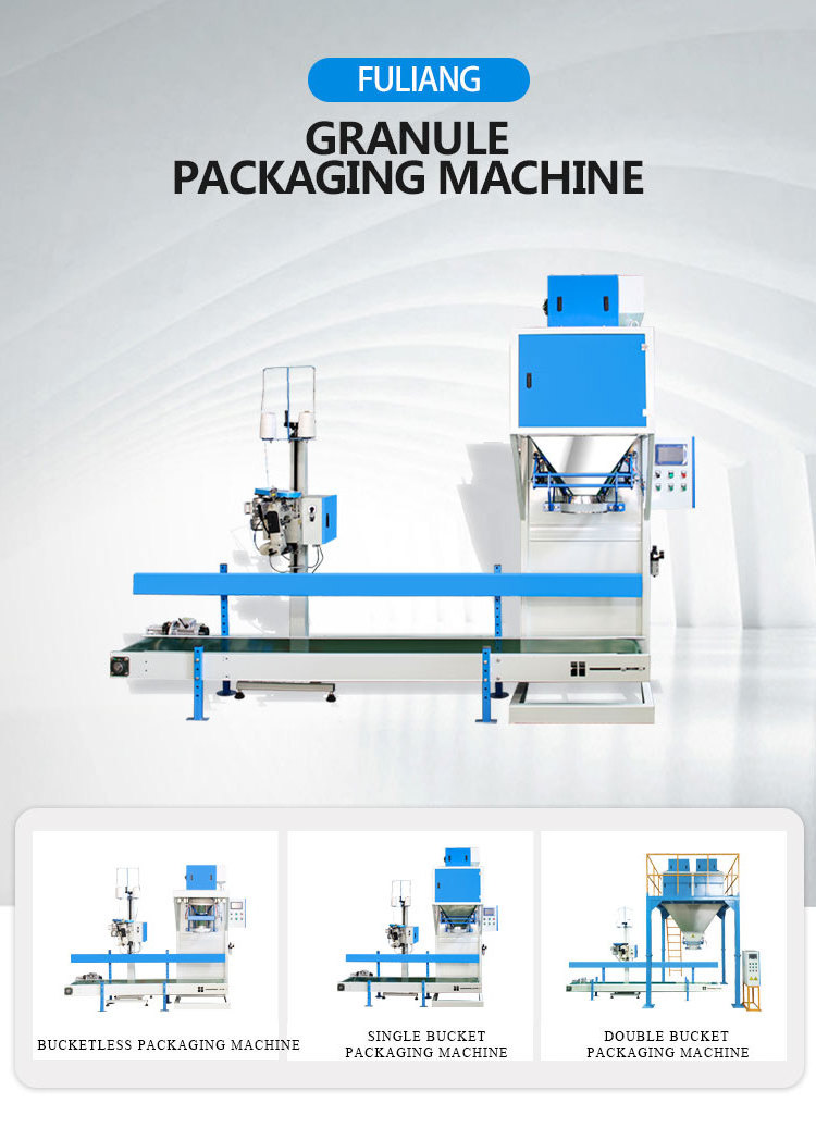 The granule packing machine is suitable for semi-automatic quantitative packaging of loose, non-sticky granular or powder-containing granular materials in the chemical, food, feed,pellet,grain fertilizer,feed,rice,beans, hardware, building materials and other industries.