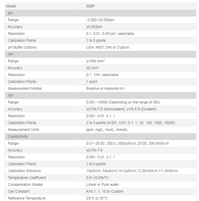 pH, ORP, DO, conductivity, ion, TDS