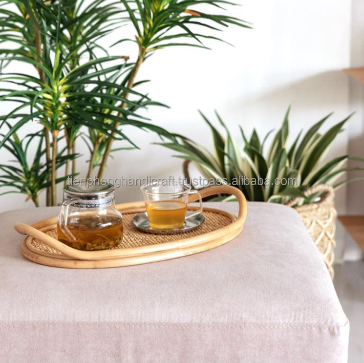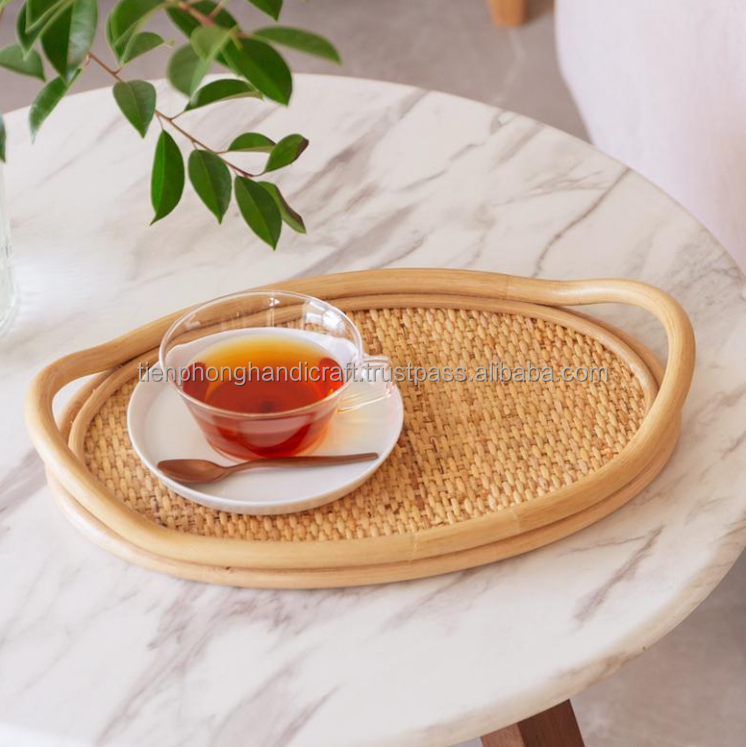 Set of 2 Oval Rattan Trays with Handle Made in Vietnam | High Quality Natural Tray for Kitchen Hot Sale Amazon