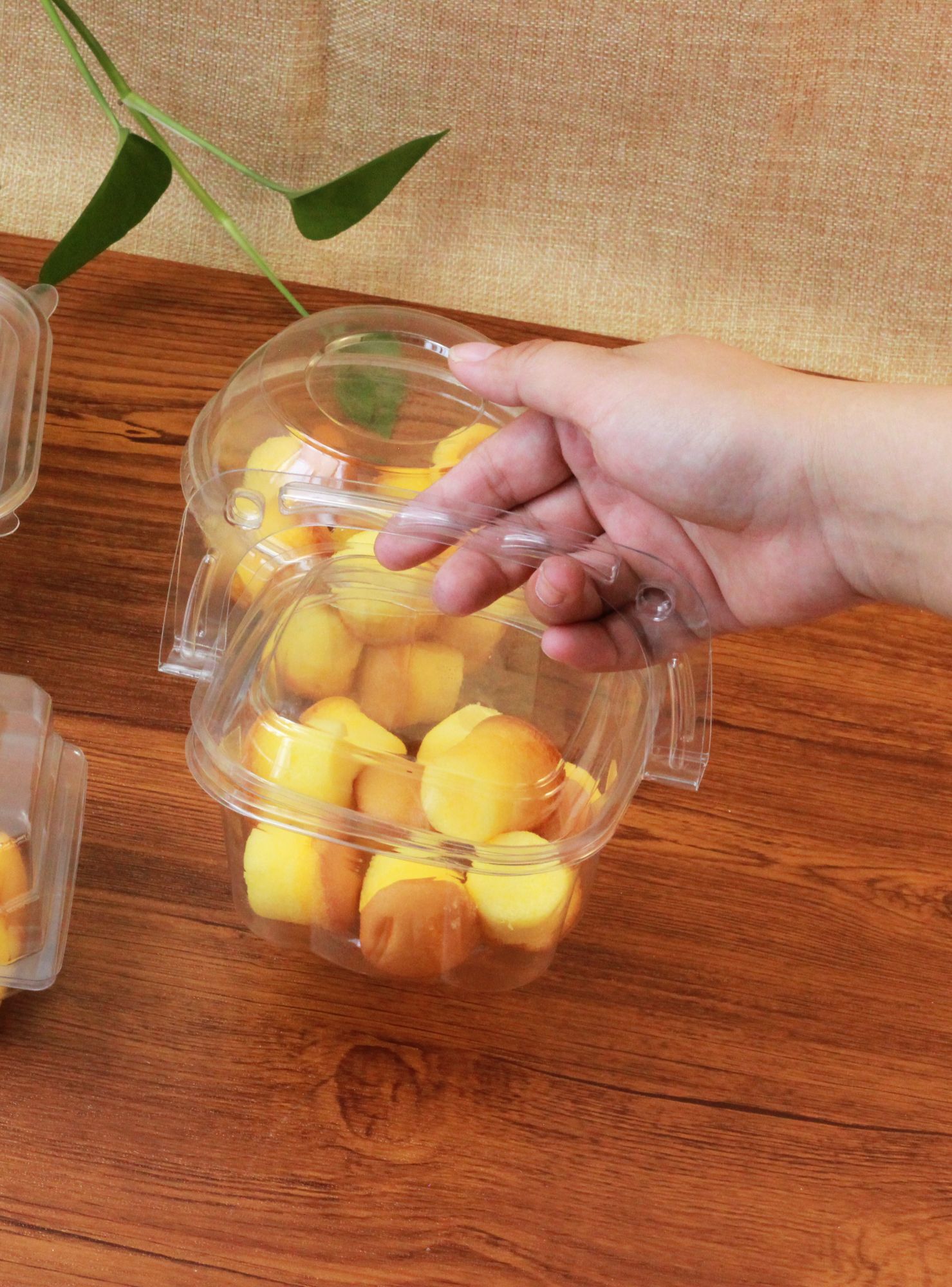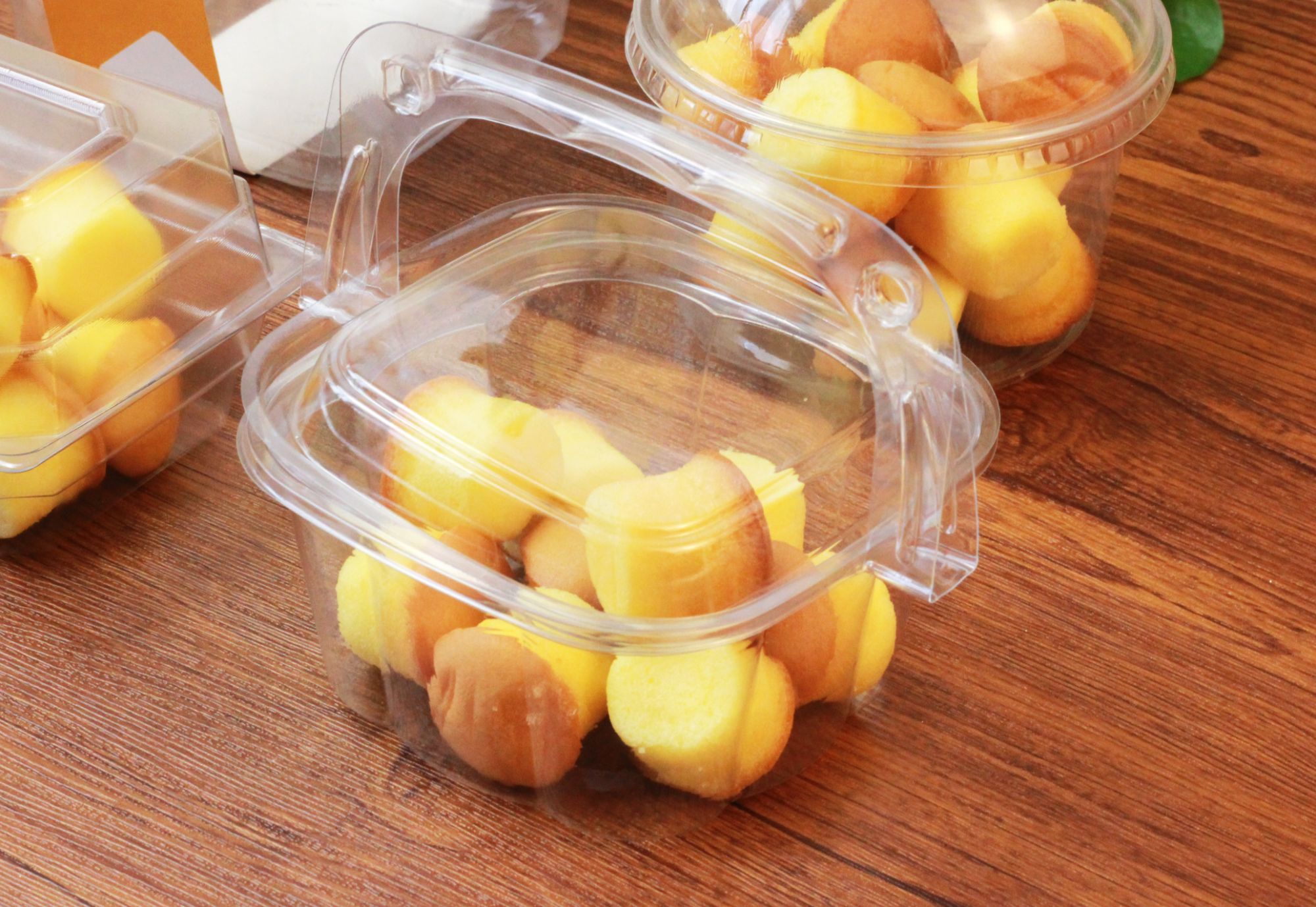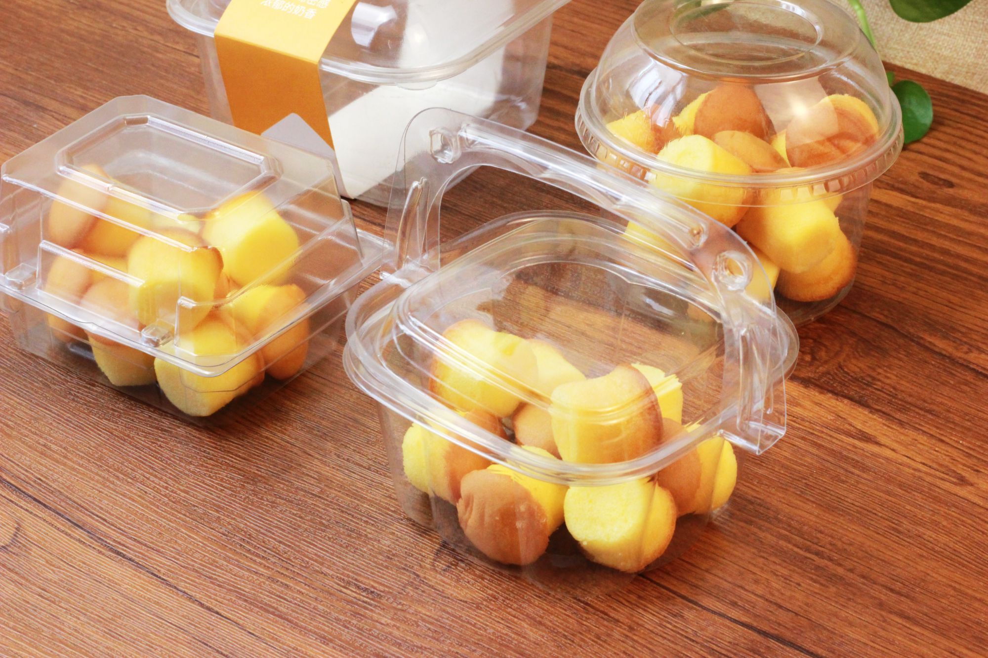 Free Sample small square clear plastic pastry box with handle for cookies donuts biscuits