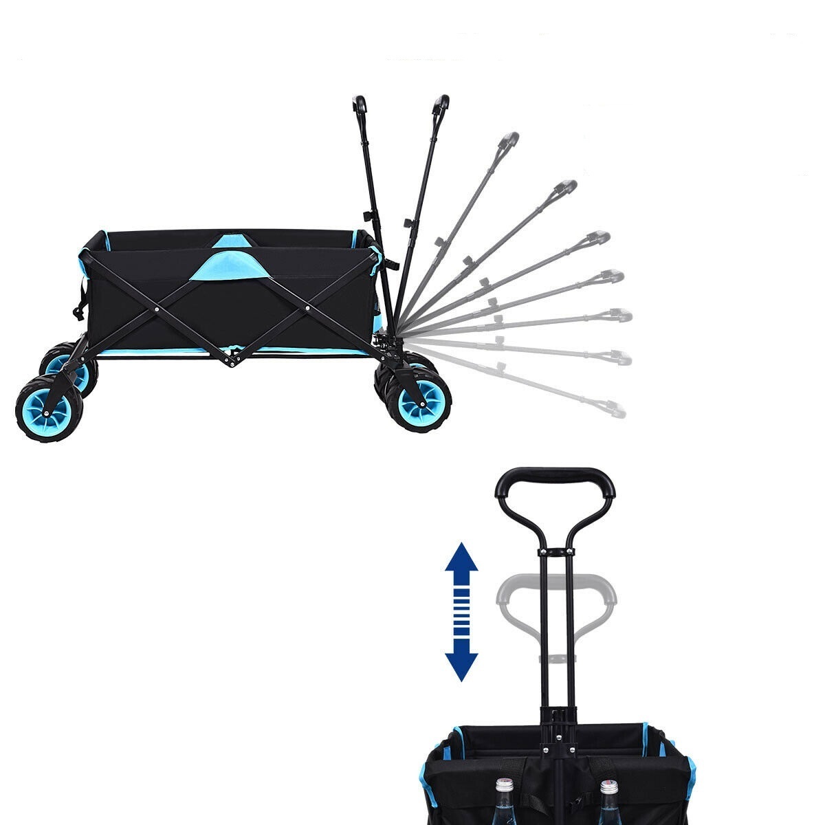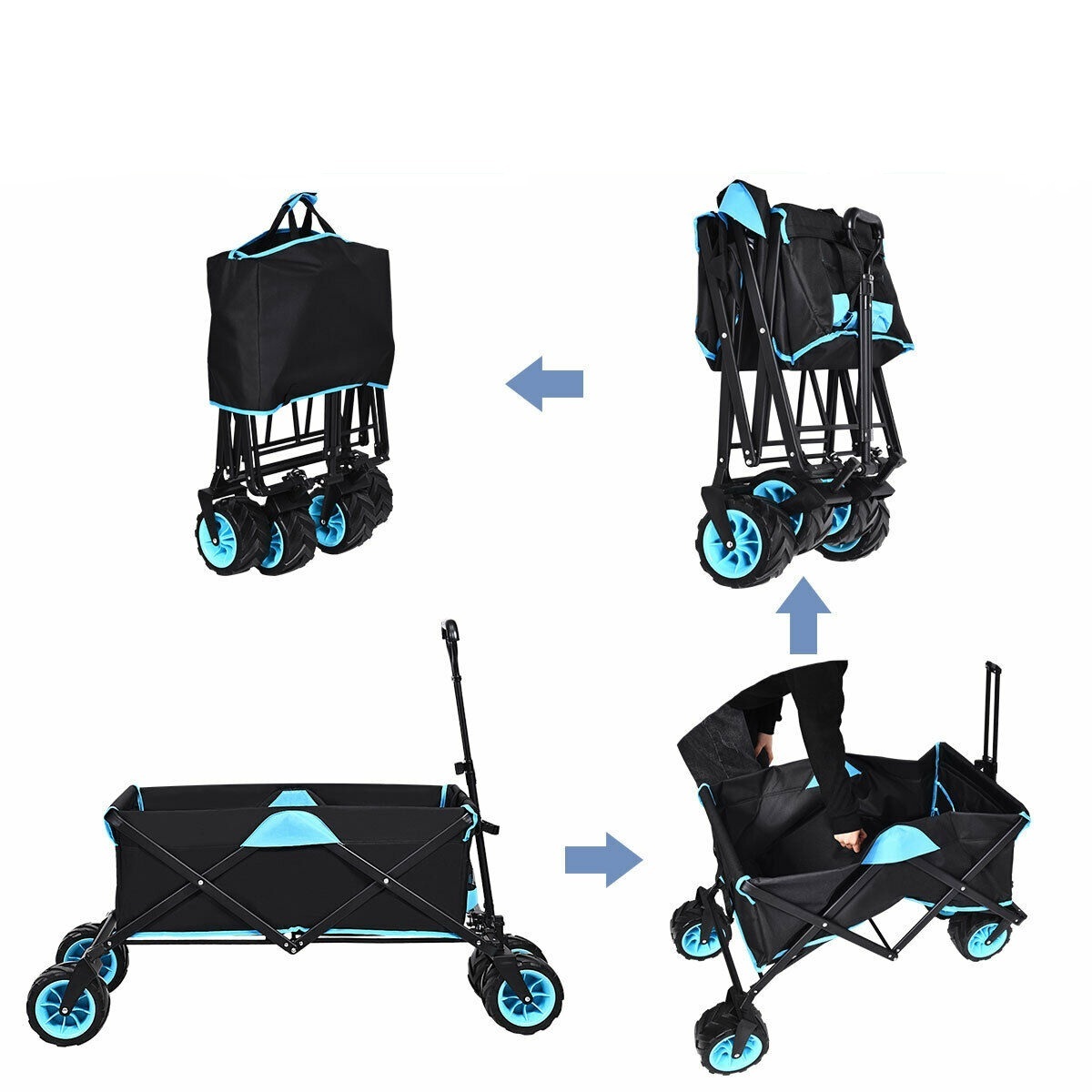 Chariot de Jardin Pliable Charrette à Main à Roulettes Bleu+Noir Capacit