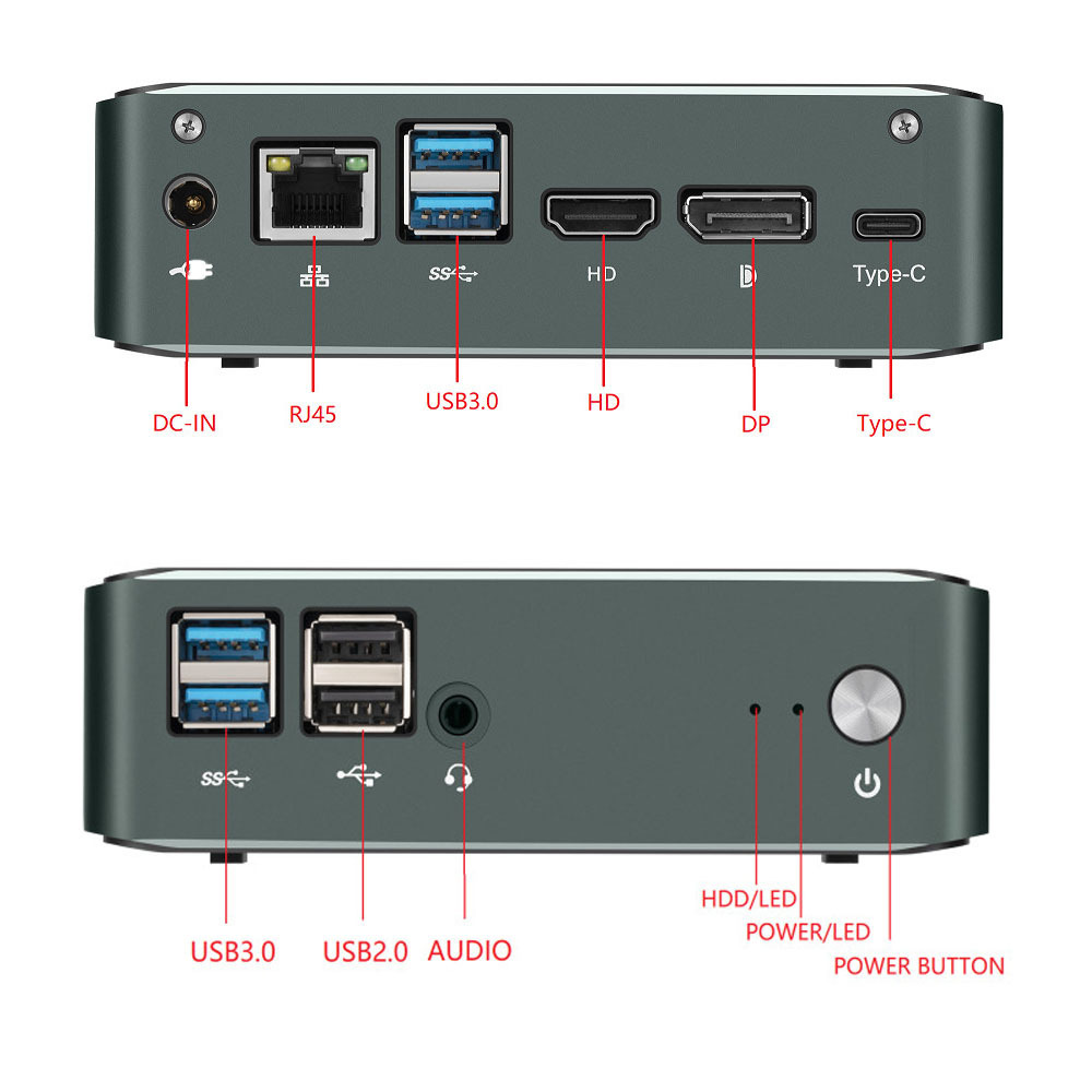 1*HDMI2.0,1*DP,1*RJ-45,1*DC-IN,2*USB2.0,4*USB3.0 ,1*AUDIO ,1*type-C ,1*power button ,2*WIIFI antenna ports