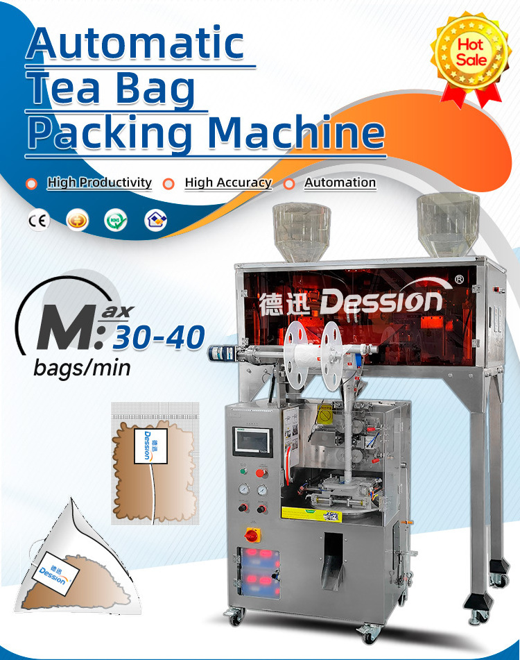 Dession tea bag packaging machine, unique rotary bag cutting device. It can be flexibly switched between flat bag and triangle bag.
