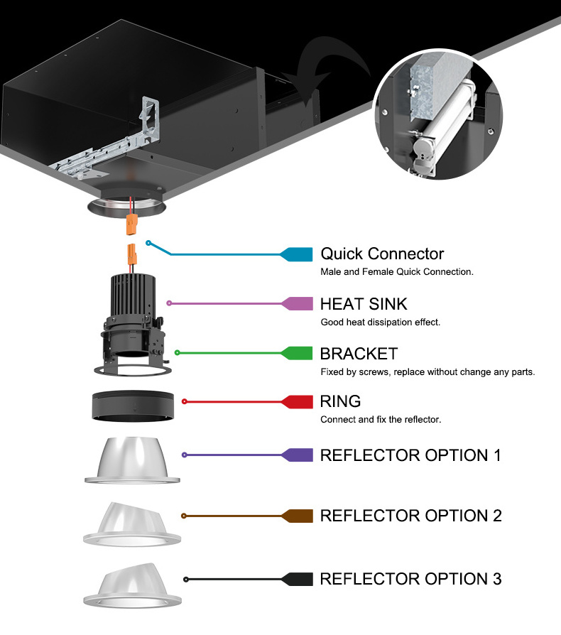 A feature enriched, small aperture downlight, the innovative design