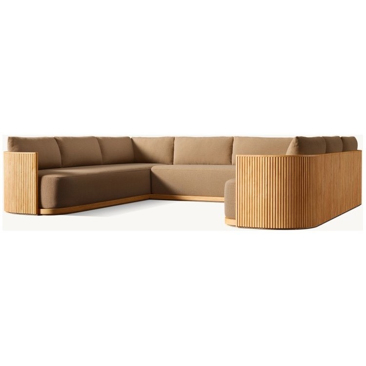 Garden furniture 3 pieces proportioned seat cushions sectional couch outdoor sofa teak wood