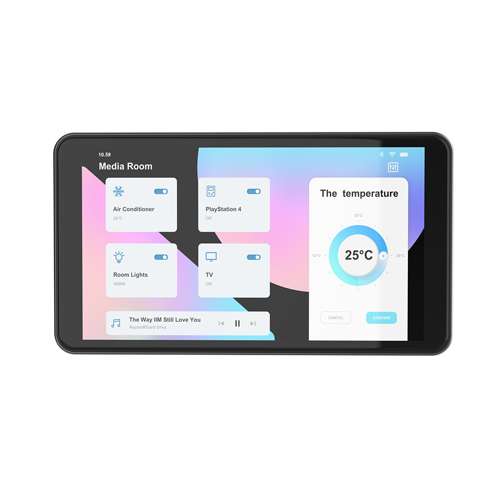 supply, no battery, no camera. Wall panel for home, hotel, office as a smart control to adjust lights, temperature, curtains, and make IP calls etc