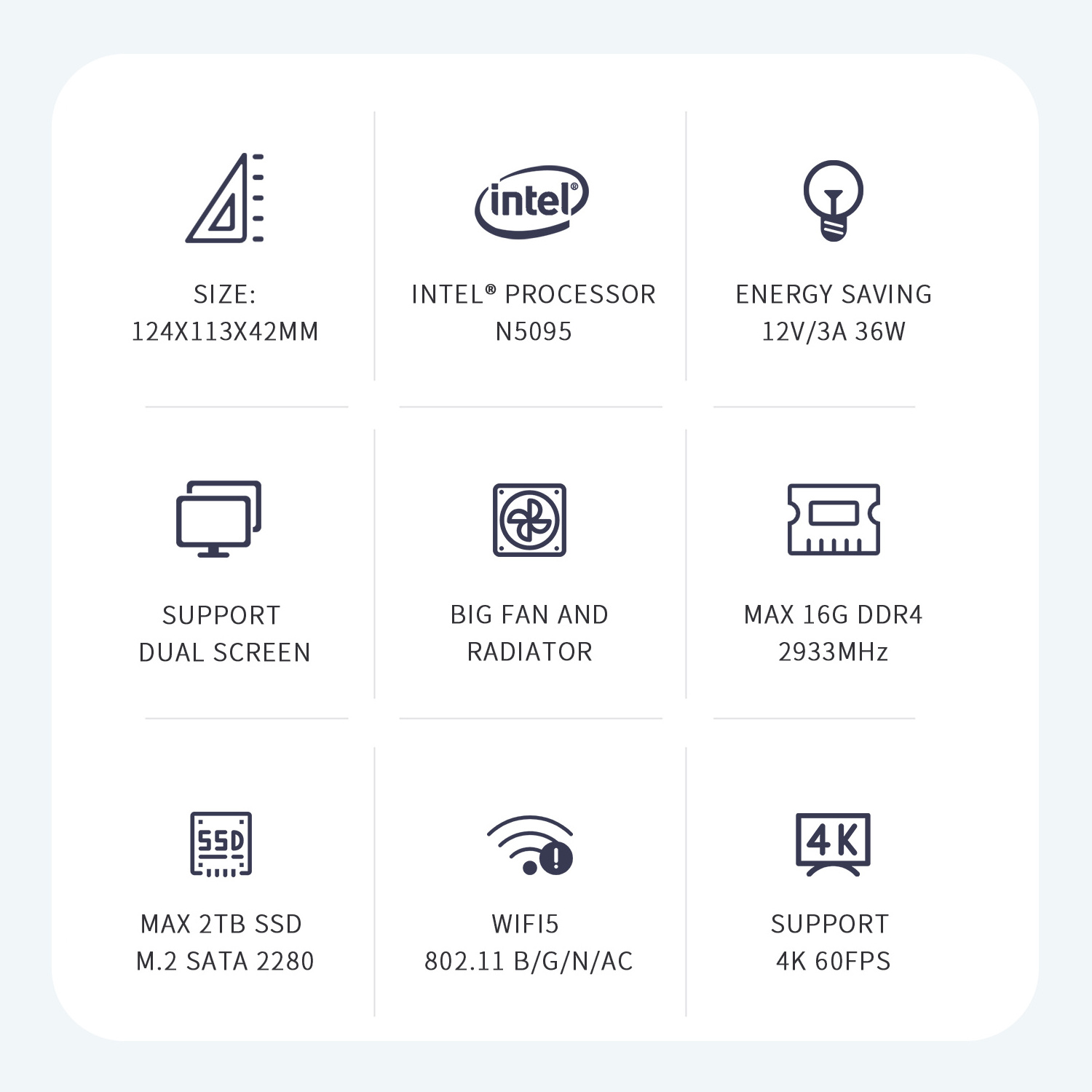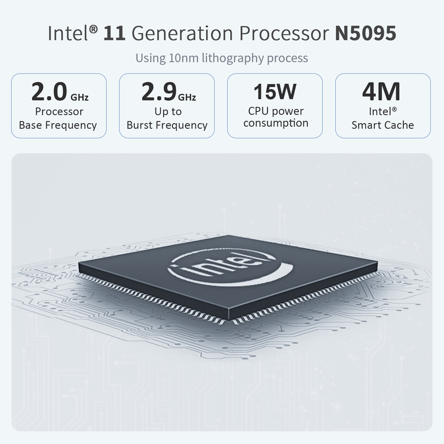 Intel® Jasper Lake Processor N5095 (4C/4T, 4M Cache, 2.0GHz up to 2.9GHz)