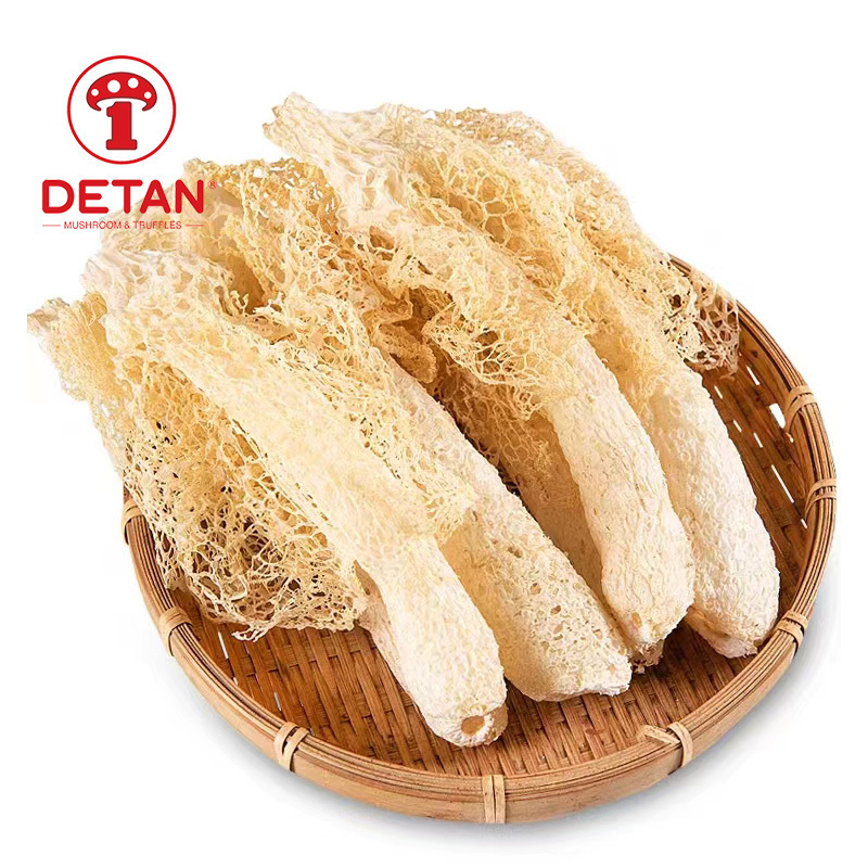 It is a cryptographic fungus parasitic on the roots of withered bamboo.Its shape is slightly like a reticulat-ed dry white snake skin.At the top of the handle,there is a fine white mesh skirt that spreads down from the cap it is a precious, no harmful authentic bacteria plant, its pulp is tender, smooth, delicious and nutritious.