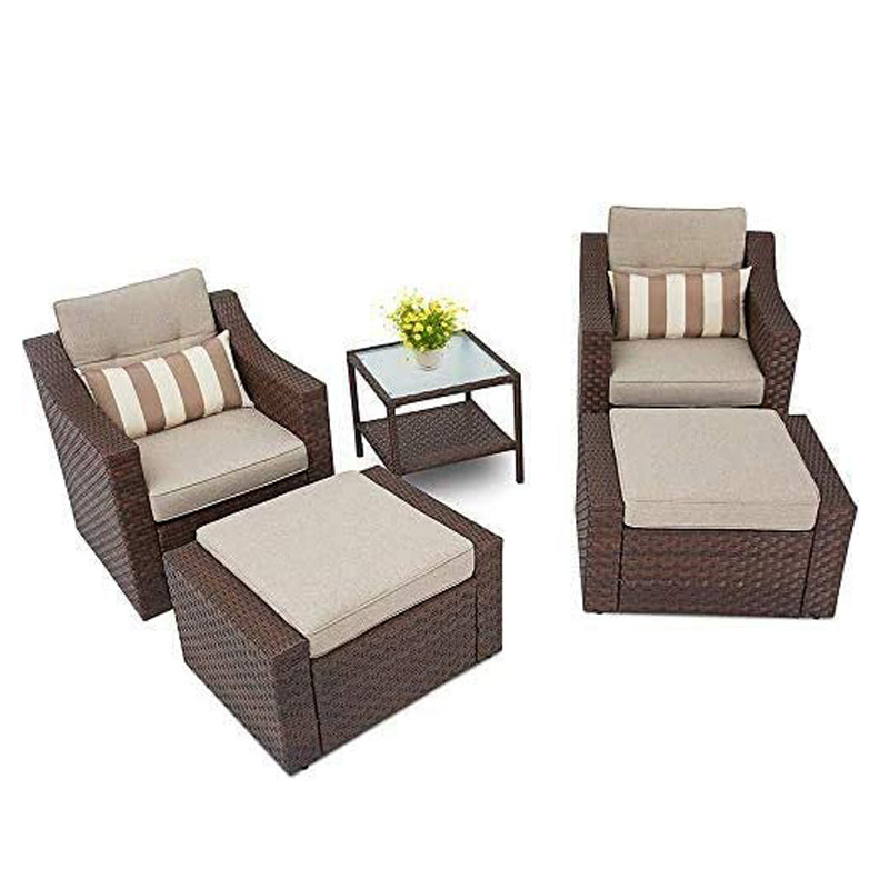 Sturdy Material-- The outdoor furniture is made of high quality PE wicker and stainless steel frame.The cushion is covered with olefin fibers, which prevents fading, and the thick foam core is wrapped with a soft polyester layer.