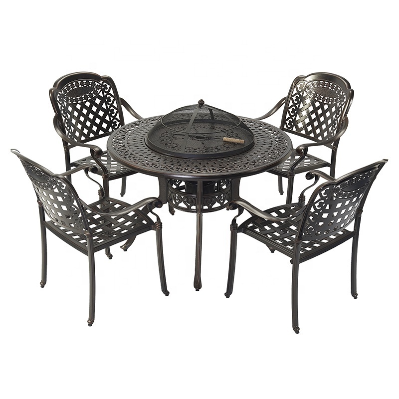 Balcony Terrace BBQ Dining Table Grill Restaurant Cast Aluminum Patio Furniture Set of 4 Chairs with Round Table