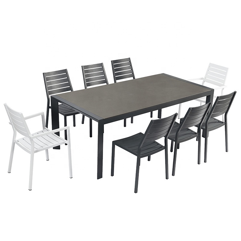 Black White Modern 9 Piece Porch Garden Restaurant Furniture Outdoor Patio Aluminum Dining Table Set 8 Chairs for Sale