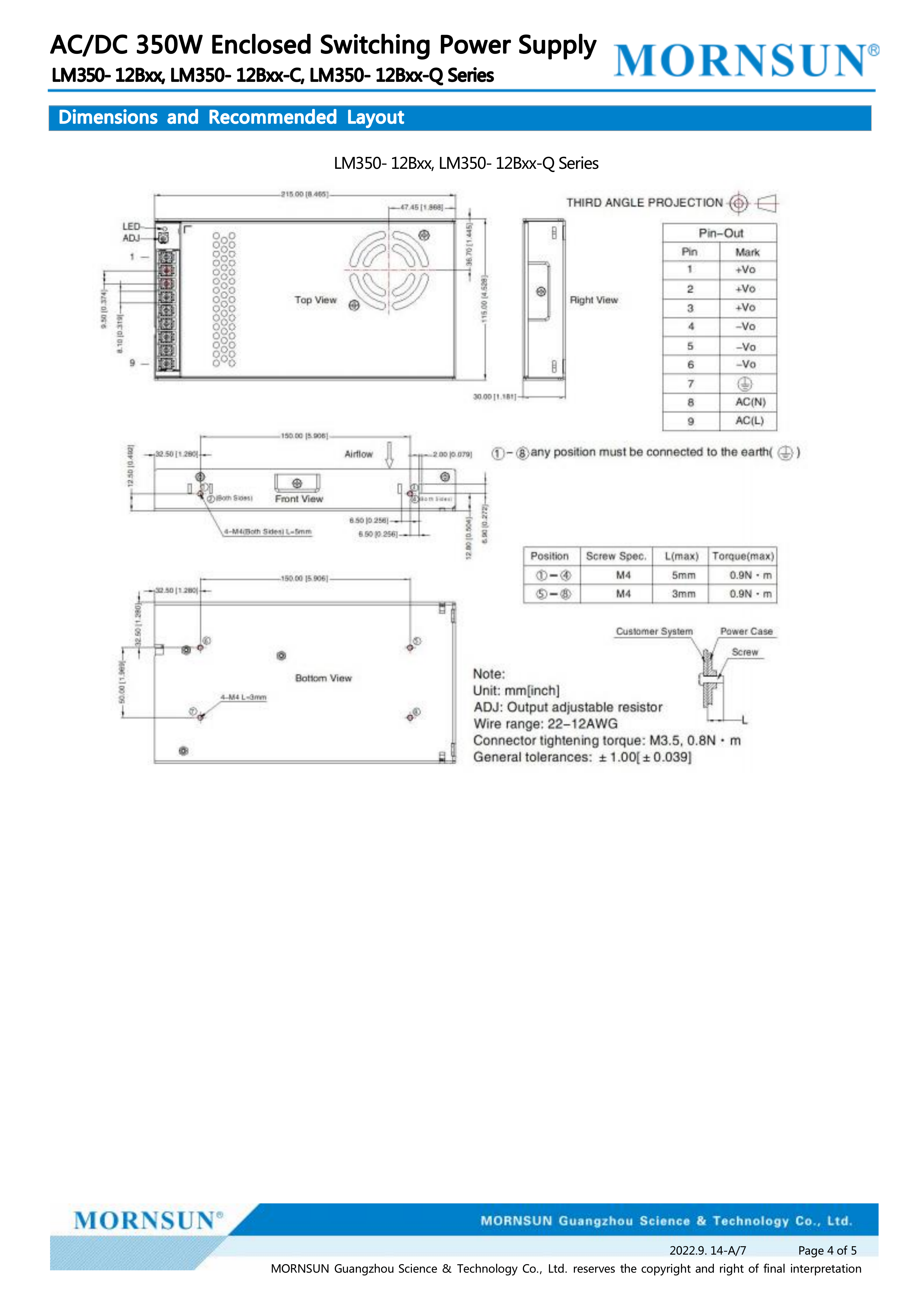 Mornsun 350W Switching Power Supply 5V 12V 15V 24V 36V 48V 54V SMPS Power Supplies